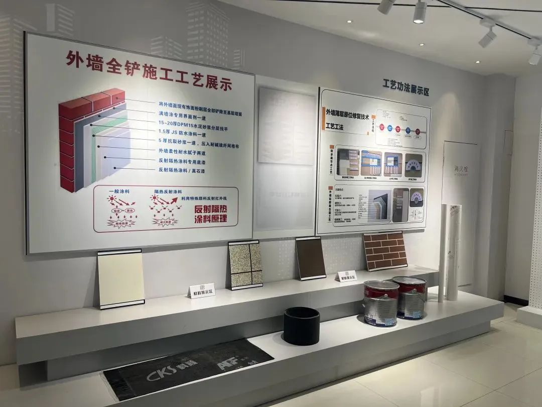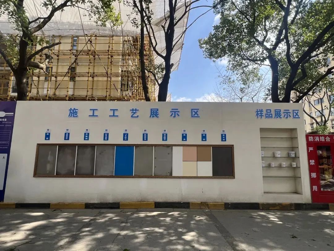 记者在十一、十二街坊都看到了一面有点“特殊”的墙,那是施工工艺展示区。张瑜介绍,在这个区域,可以让居民直观地看到每一层的工艺上墙后是什么样子,旁边还展示了施工材料,“有时候我们直接跟居民解释施工工艺,大家会听不明白,但是通过这面展示区,就能直接看到我们的施工步骤,增加透明度。”