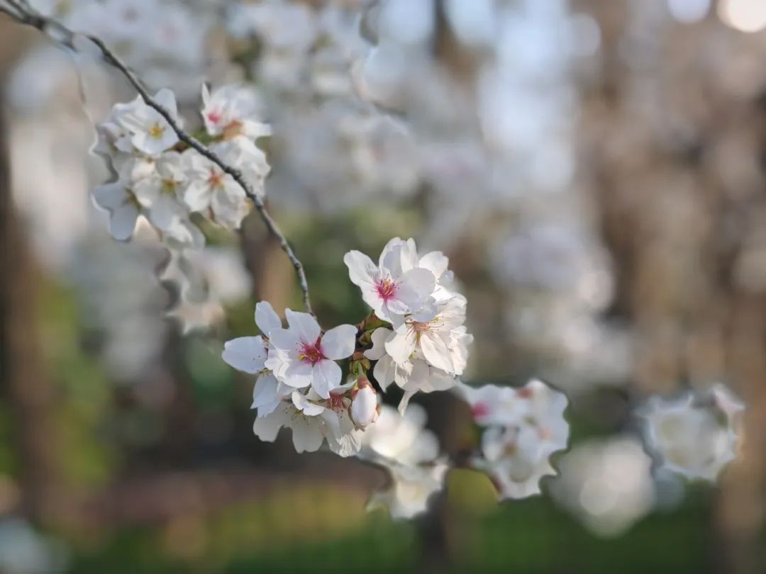 每年3月中旬至4月上中旬,早樱与晚樱相继开放,粉白相间的花瓣在春风中轻轻摇曳,如梦如幻。漫步在樱花林中,仿佛置身于一个粉色的童话世界,让人心旷神怡,陶醉不已。