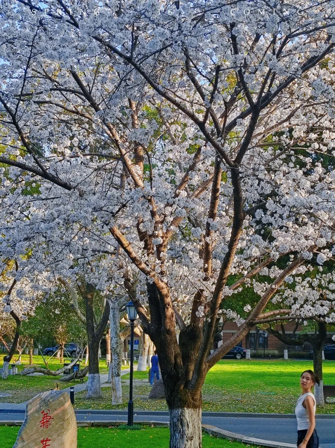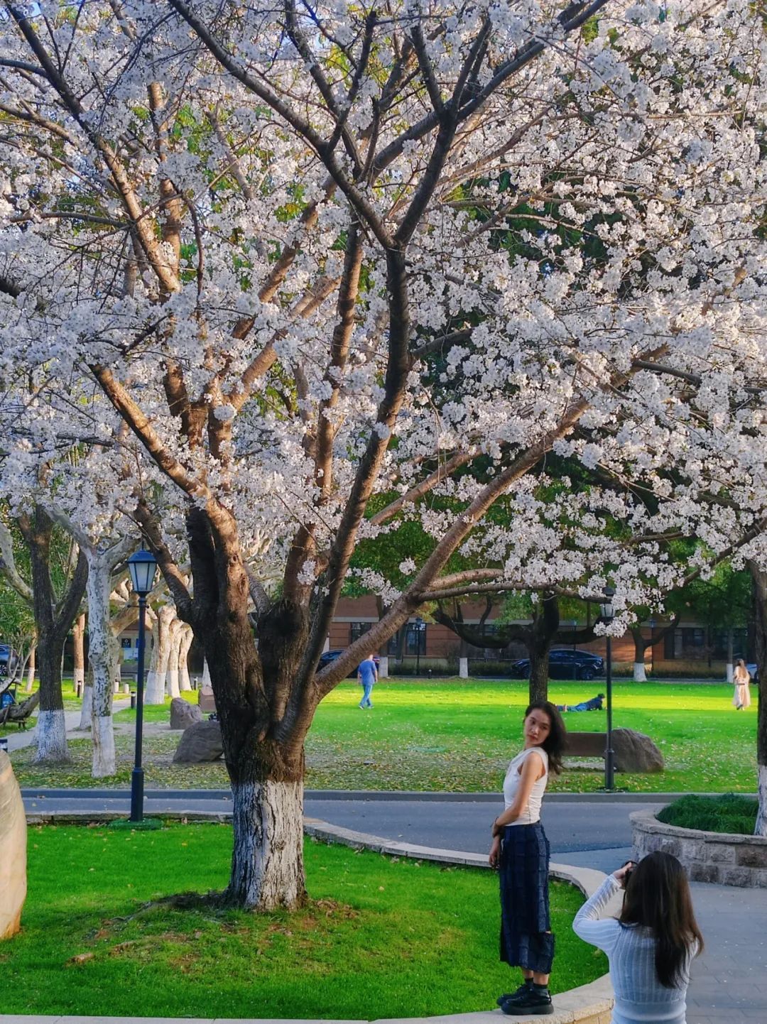 校园里安安静静的,树也安安静静的,看着树,仿佛“春和景明”就具象化在眼前。如果这个春天一定要拍一棵樱花树,“宁宁”强烈推荐的就是这棵了。