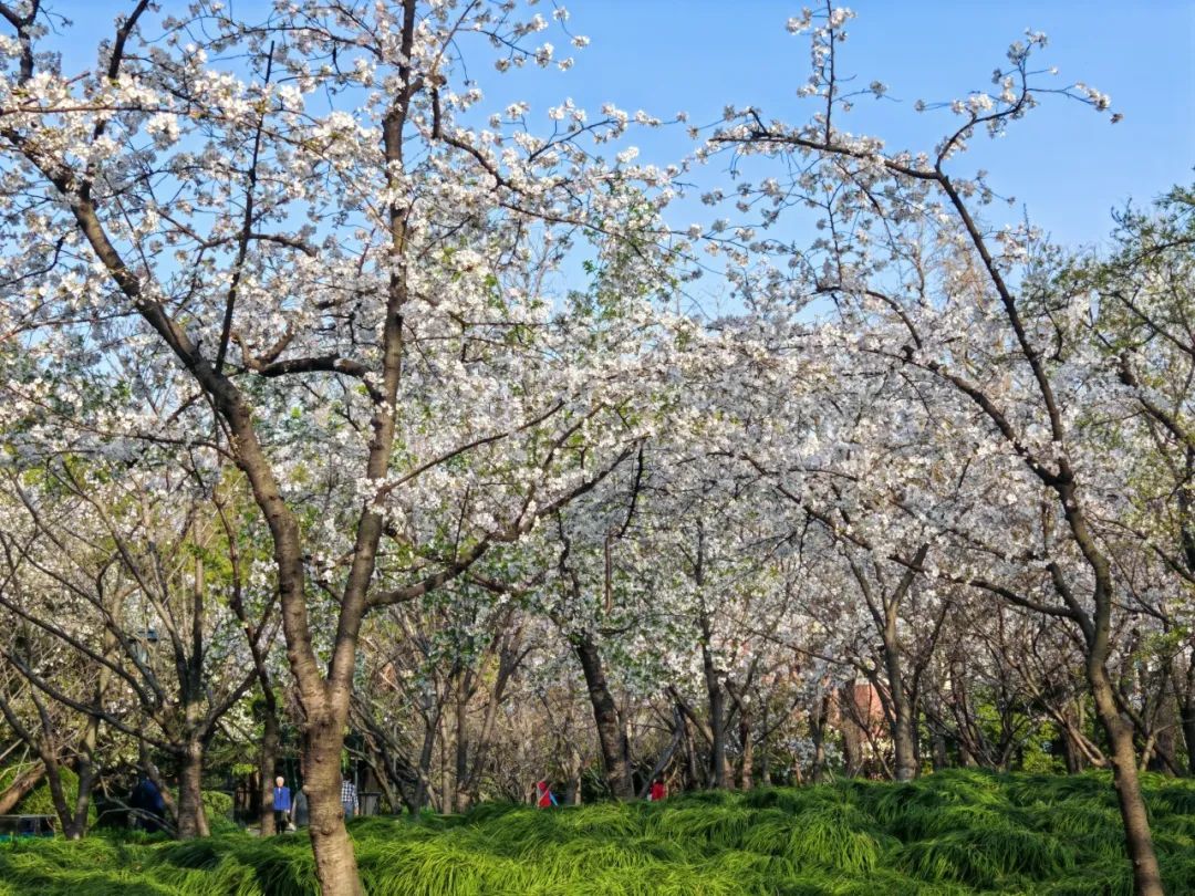 百年中山公园内的樱花林更是别有一番风味。公园内有不少樱花树,最密集的就是位于御花园酒店旁边的樱花亭。这片樱花林种植年代久远,经过2005年的整体改造后,更是焕发出新的生机。改造后的樱花林占地约1350平方米,地形错落有致,林间小道曲径通幽,季相变化丰富的花灌木点缀其间,为游客们带来了一种全新的赏花体验。