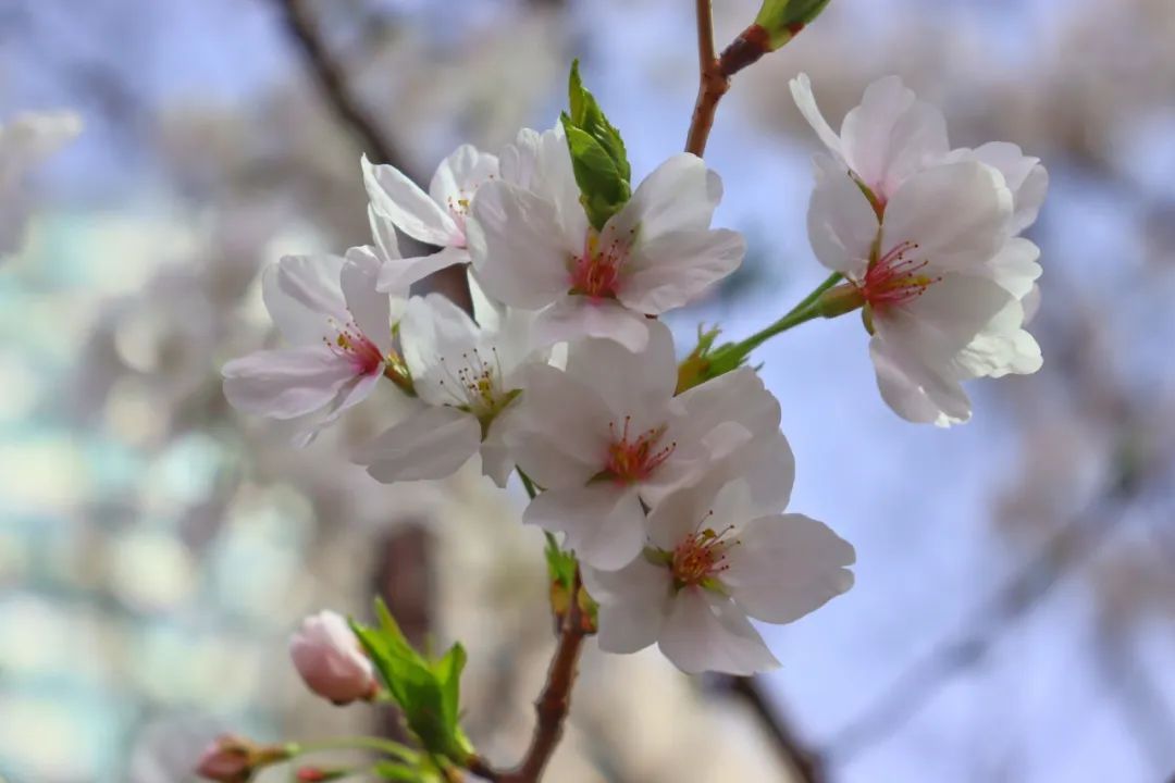 在遵义花境的入口处,栽种着几棵吉野樱花树,在春日暖阳的滋养下,枝头的樱花开得正好,有的花瓣完全展开,尽情地舒展身姿;有的含苞待放,像是一颗颗粉色的小珍珠。从浅粉到深粉,从花苞到花瓣,簇拥在枝头的樱花错落有致,尽显唯美浪漫气息。