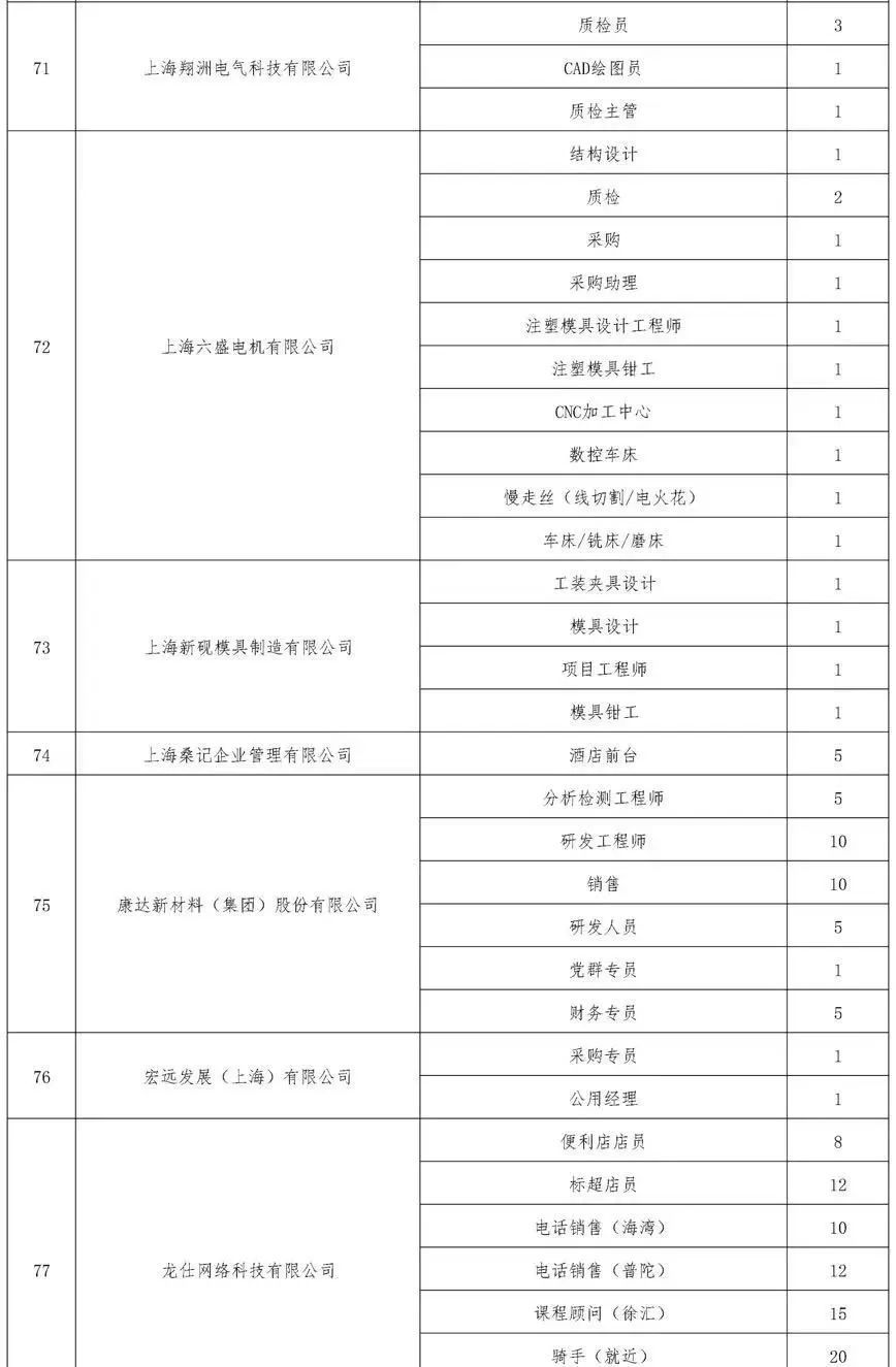 “春风送岗位”公益招聘会岗位一览表