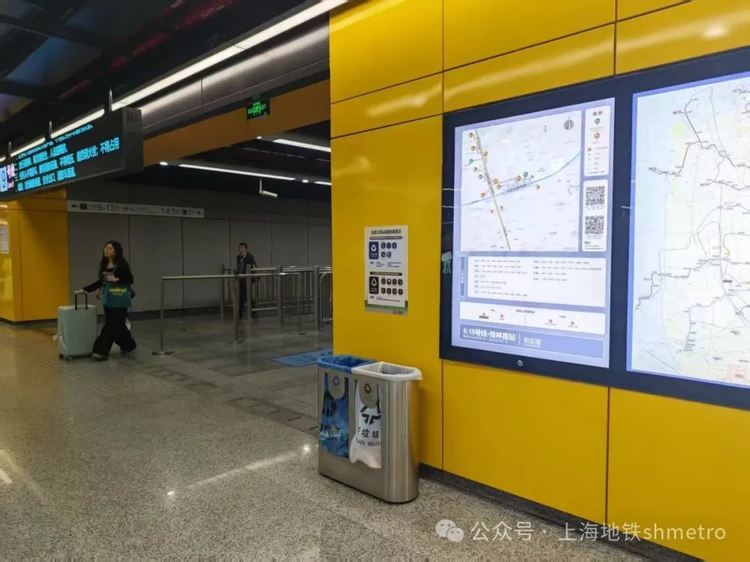 上海地铁车站作为乘客集中出行的公共场所,根据相关要求,与全市范围所有“公共场所”垃圾分类保持统一标准:即设置“可回收物”和“干垃圾”两类垃圾桶。