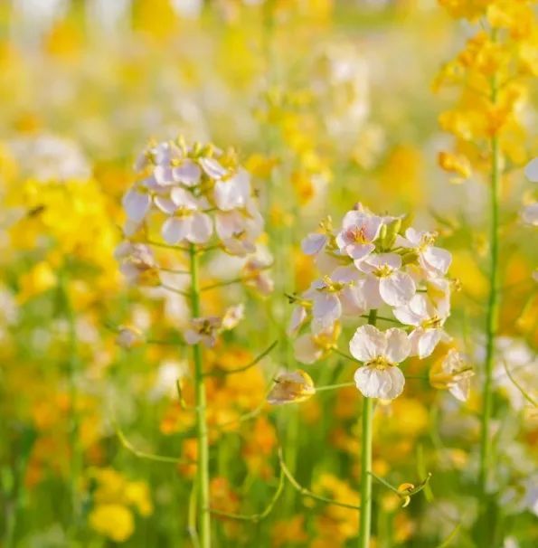 今年油菜花海打破了传统单一的金色浪潮!鹅黄、淡金、橘粉的油菜花错落交织,像是大自然打翻了调色盘,又或是春风特意为横沙调配的“莫奈色卡”。
