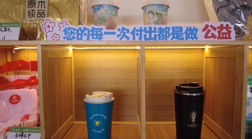 “您消费的每一杯咖啡,我们都将捐出1元用于支持当地的助农、助老、助残工作。”点餐台一旁,宣传标牌上的文字,也提示着这家“咖啡店”的与众不同。