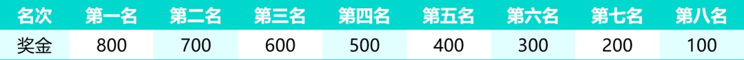 组委会为竞赛组前八名的家庭发放奖金,详见下表(单位:人民币)