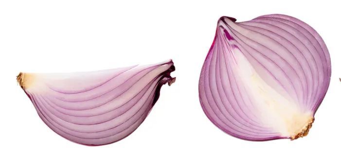 将洋葱纵切,可以看到一个扁平的、节间缩短的鳞茎盘,其上的顶芽将来会发育成花序。四周肉质的鳞片叶,层层包围鳞茎盘,贮有大量营养物质,最外围还有几片膜质鳞片叶保护,叶腋有腋芽。