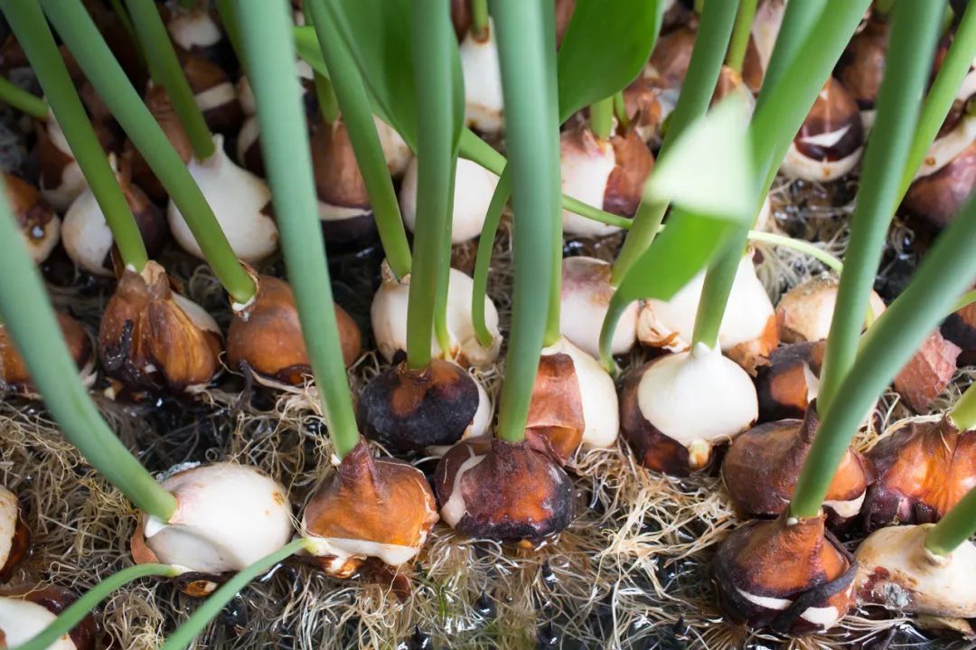 许多朋友种植的种球经常会出现发霉的现象。种球种植前,可选择剥去外层干鳞片以利吸水、发根、发芽,种前种球需用500~800倍的多菌灵或百菌清、克菌丹等杀菌剂浸种15~20分钟,然后取出晾干后种植,切断种球携带病源。