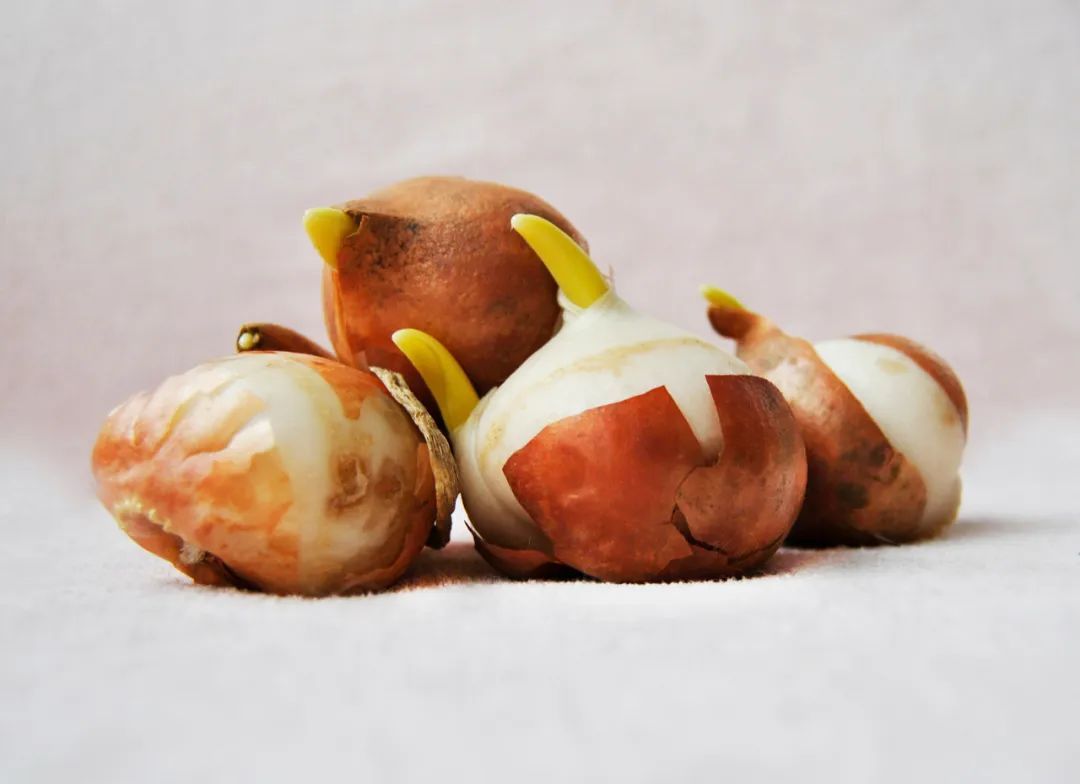 收到的郁金香种球有一层棕色外皮,建议先将外皮剥掉,露出白色的“蒜头”,检查一下种球是否健康。