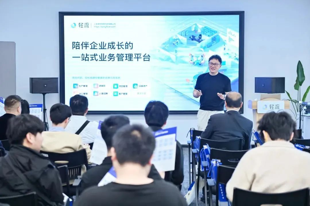 部分与会嘉宾走进上海易校科技有限公司旗下打造的无代码系统搭建平台“轻流”。学习“轻流”是如何通过强大的表单、可自定义的业务流程、丰富的数据报表、灵活的权限管理以及自动化业务机器人Q-Robot串联起企业的多元化业务管理,助力平台整合团队内部协作及外部业务管理。