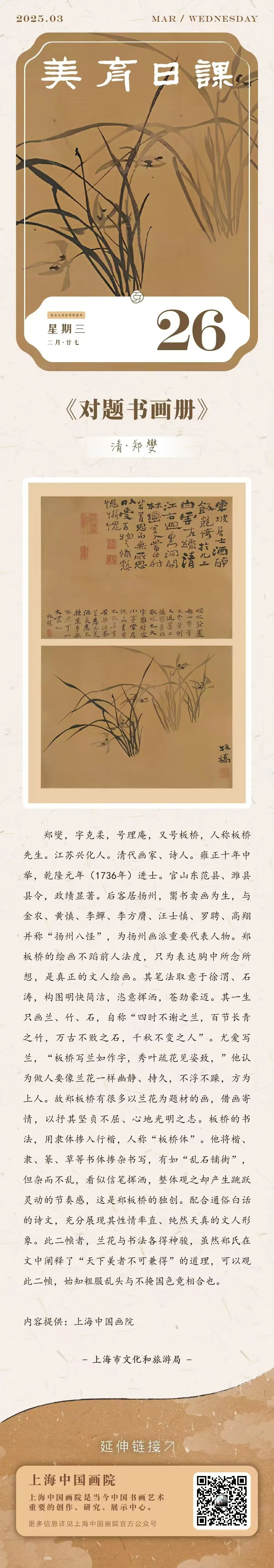 美育日课 | 《对题书画册》:清·郑燮