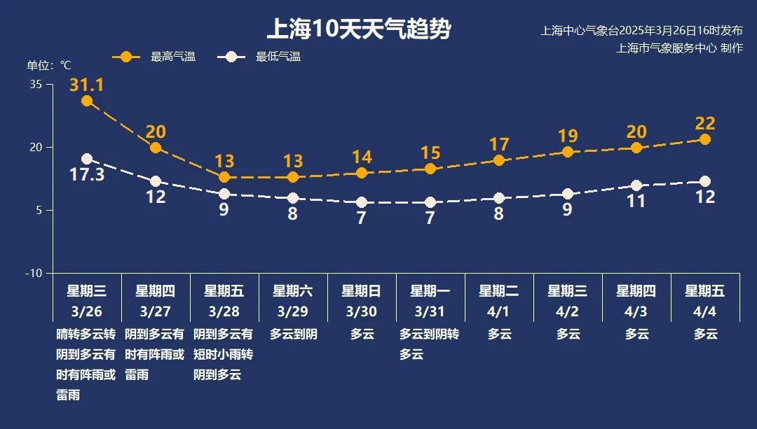 今天暖气团依然强盛,在偏南风的增温作用下,延续“初夏”体感,闵行区最高气温定格在31.5℃,三月份连续两天气温冲破30℃,是建站以来首次出现!