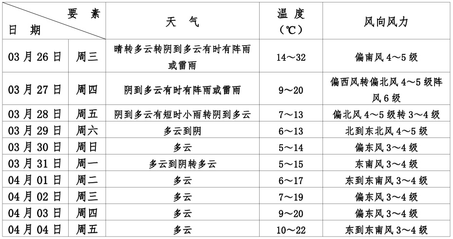 本区未来十天天气预报