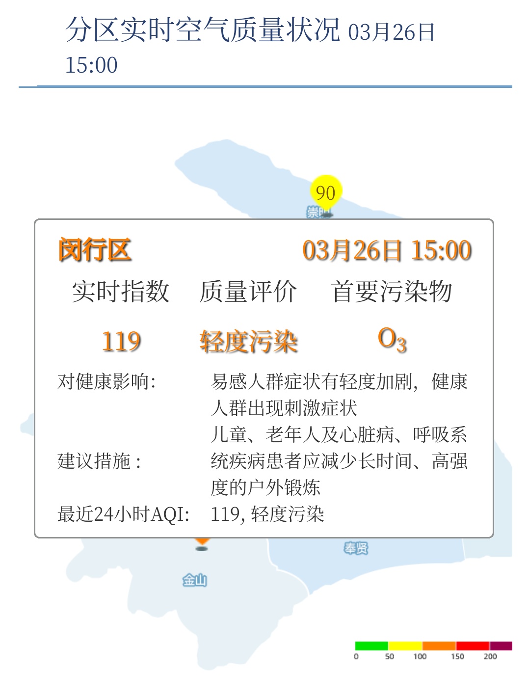 闵行区AQI为119,轻度污染,