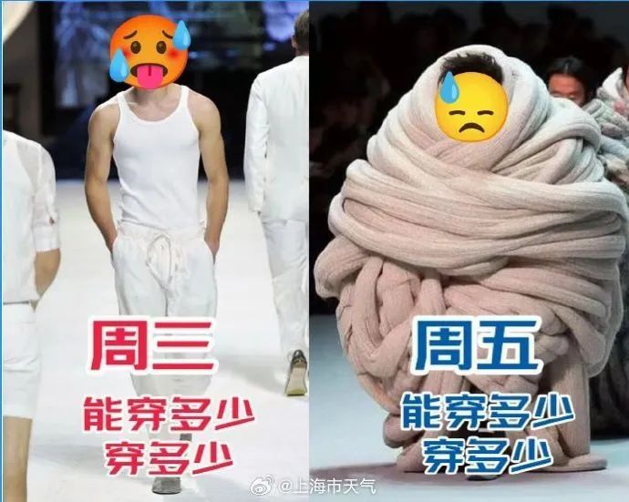 明天中午前后冷空气开始控场,偏北风风力增大,4—5级阵风6级,沿江沿海地区更大,在雷雨时还可能出现7—9级阵风。气温倒挂,最高气温出现在上午,在20℃左右,随后气温一路下跌,傍晚以后仅有12℃、13℃,冷风瑟瑟,别忘了把厚外套带上,晚归用得着。