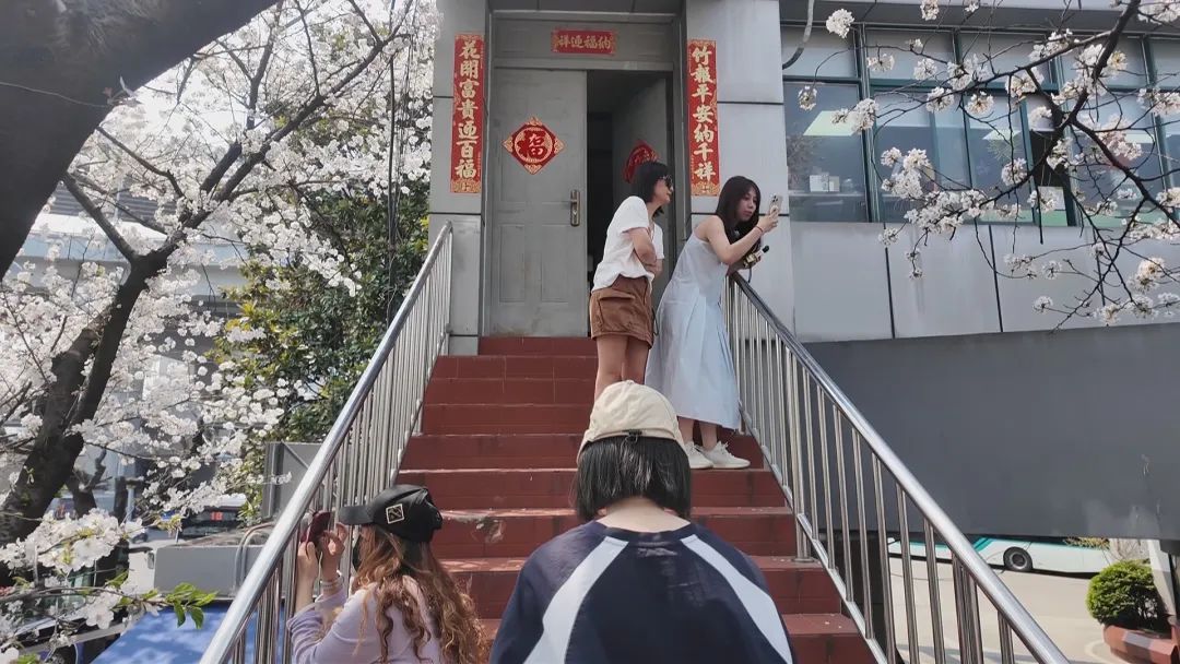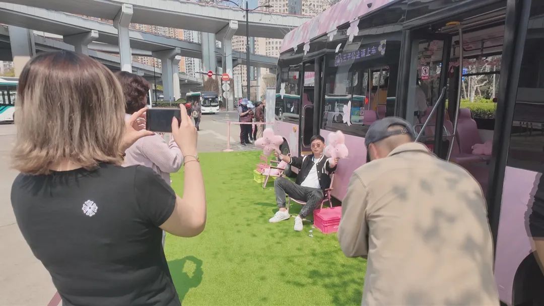 “太好看了!‘最美公交车站’果然名不虚传。”一位市民兴奋地说道。另一位市民也赞不绝口:“今年樱花蛮漂亮的,再加上旁边的景观,很适合拍照。”