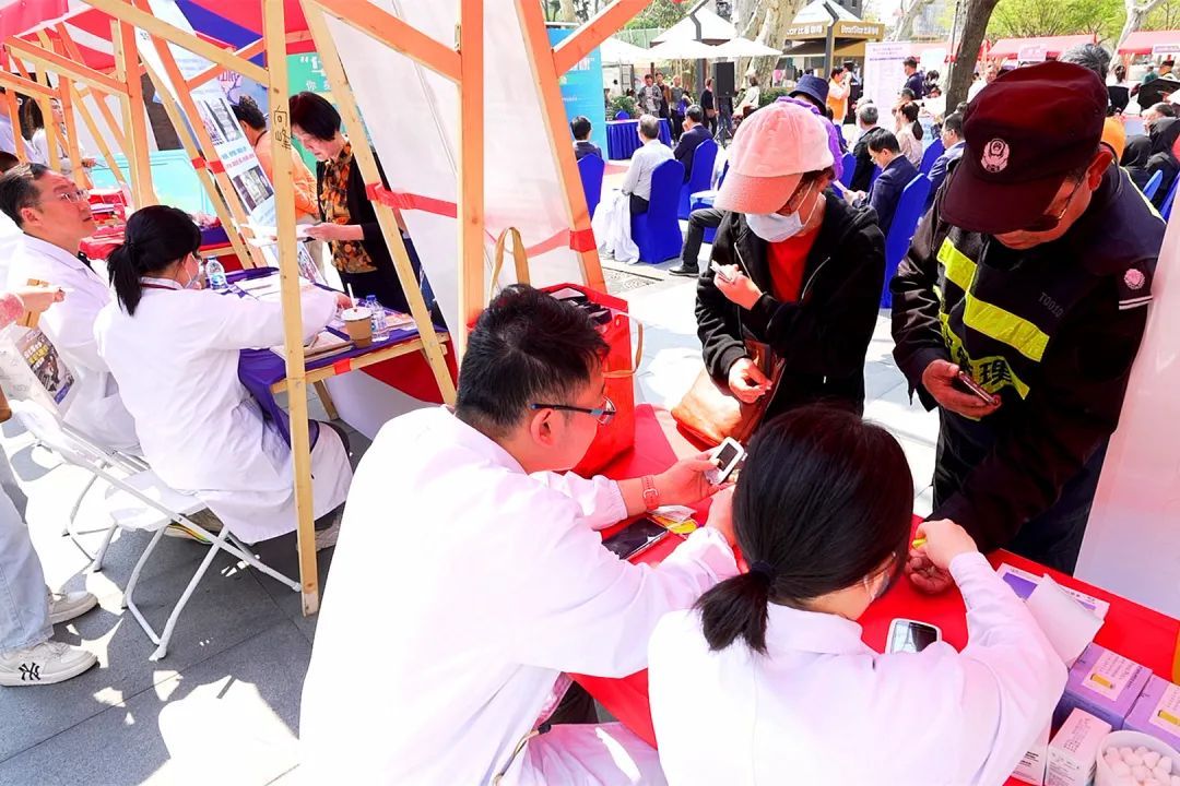 同步举行的健康科普集市上,来自华东医院妇科、呼吸内科、内分泌科、皮肤科、疝减重外科、消化内科、心内科、整形美容科、中医科、伤外科等10个科室的医生现场坐诊,为市民提供免费健康咨询和初步诊断服务。