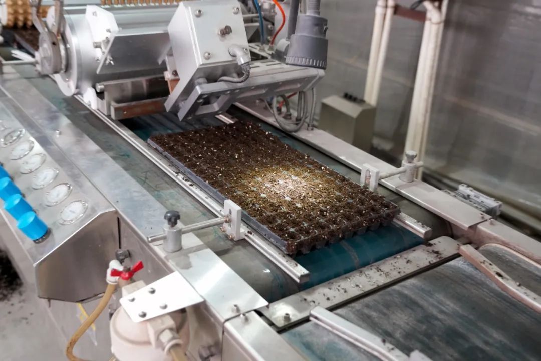 走进汉圣育苗基地,自动化流水线正以每分钟近千粒的速度完成装盘、播种、覆土,操作员只需实时监控运转状态,手工补漏未覆盖种子的孔格。“这套半自动设备每天能处理80万粒左右的种子。”生产助理胡海迪介绍道。