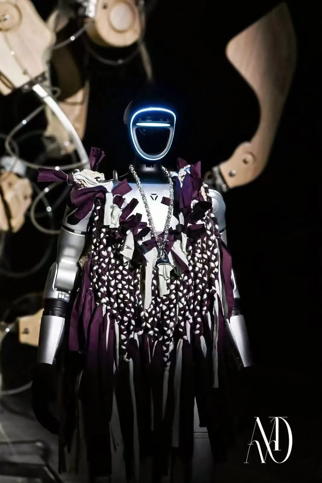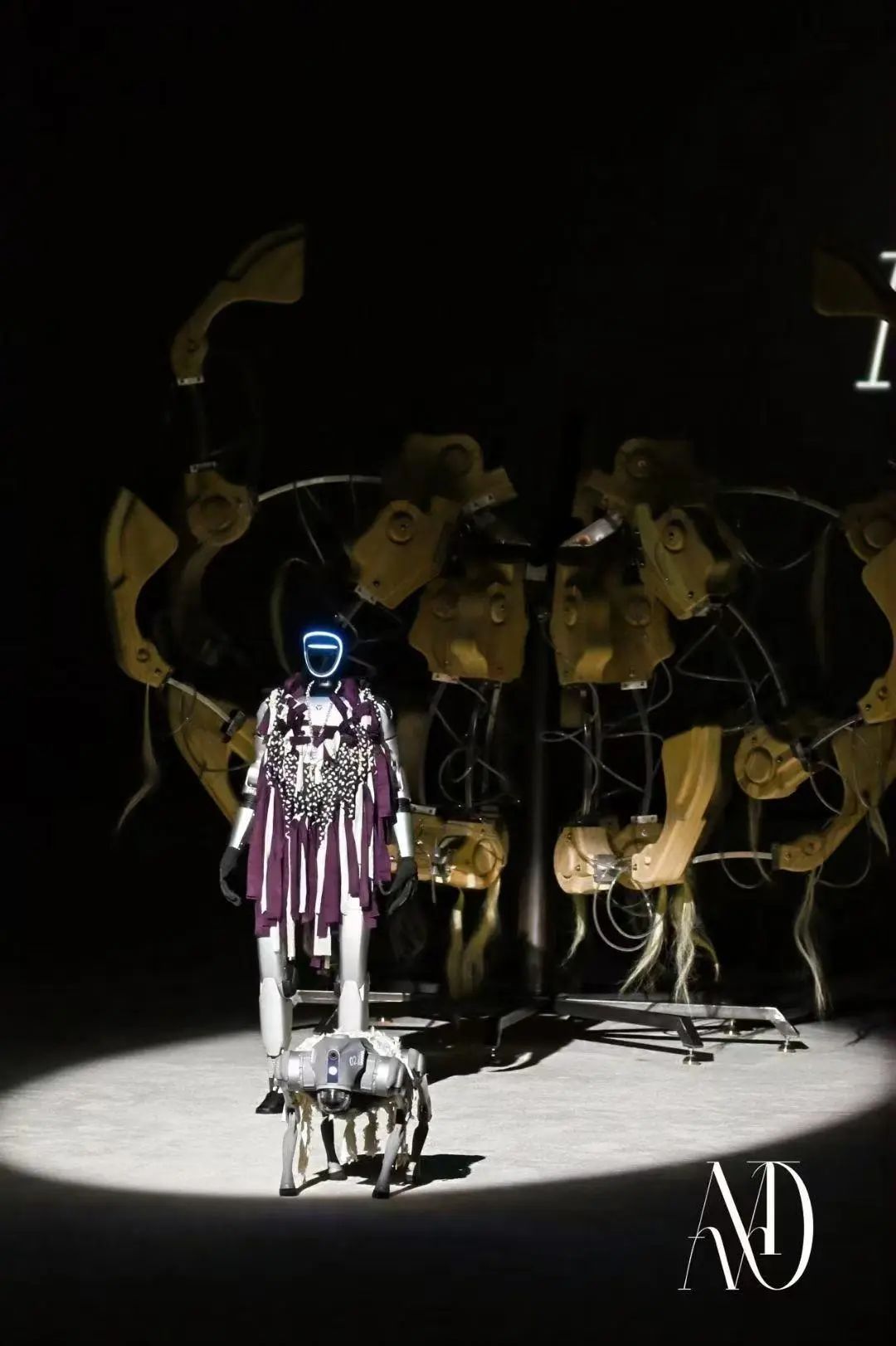 值得一提的是,来自宇树的高科技人形机器人G1也在潮流的节拍中翩翩起舞,这也意味着,机器人走“猫步”的崭新时尚篇章在上海时装周实现。这些机器人,还与艺术家Yiming共创赛博马艺术装置,这一前卫表达令观者直呼精彩。