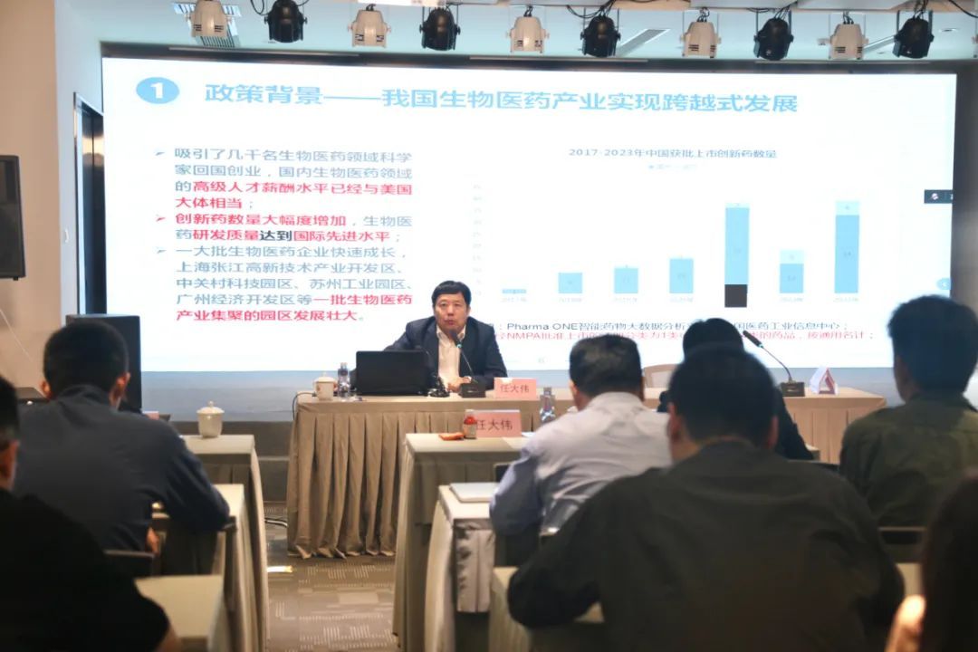培训会特邀上海市科委生物医药科技产业促进中心、国家药品监督管理局南方医药经济研究所等权威机构的专家学者进行专题授课,分别围绕生物医药产业政策、行业发展趋势等方面开展深度解读,为与会人员系统梳理产业政策脉络,深入剖析行业发展动向。