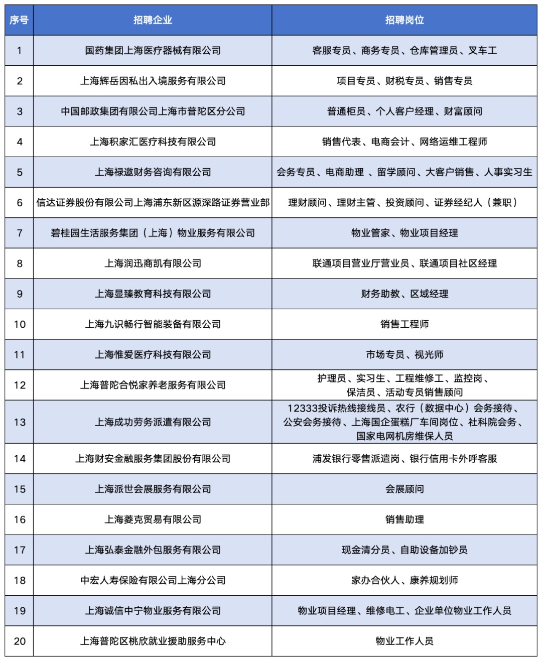 招聘企业及岗位