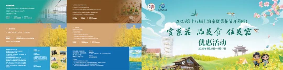 赏菜花、品美食、住美宿优惠活动以2025年第十八届上海奉贤菜花节为载体,结合官方推荐的“一起去村游”路线,集结各酒店、餐饮店、咖啡店,民宿、文创等优惠券等特色文旅优惠资源,进一步激发文化和旅游消费潜力,丰富徒步体验。