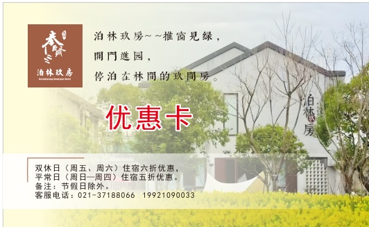 凡参与3月30日奉贤区全民健身户外嘉年华活动的游客,凭参赛短信即可享受合作商家推出优惠活动(消费时出示即可),您可以在徒步前提前入住奉贤民宿,提前感受乡愁美景!
