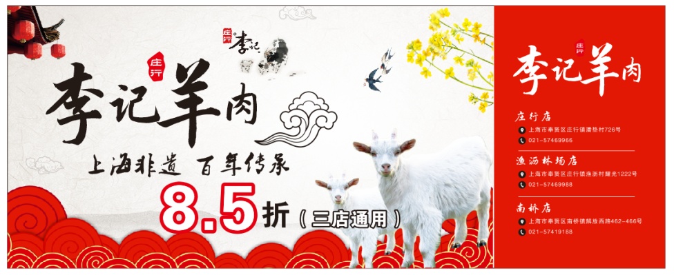 一品羊庄、李记羊肉全场8.5折