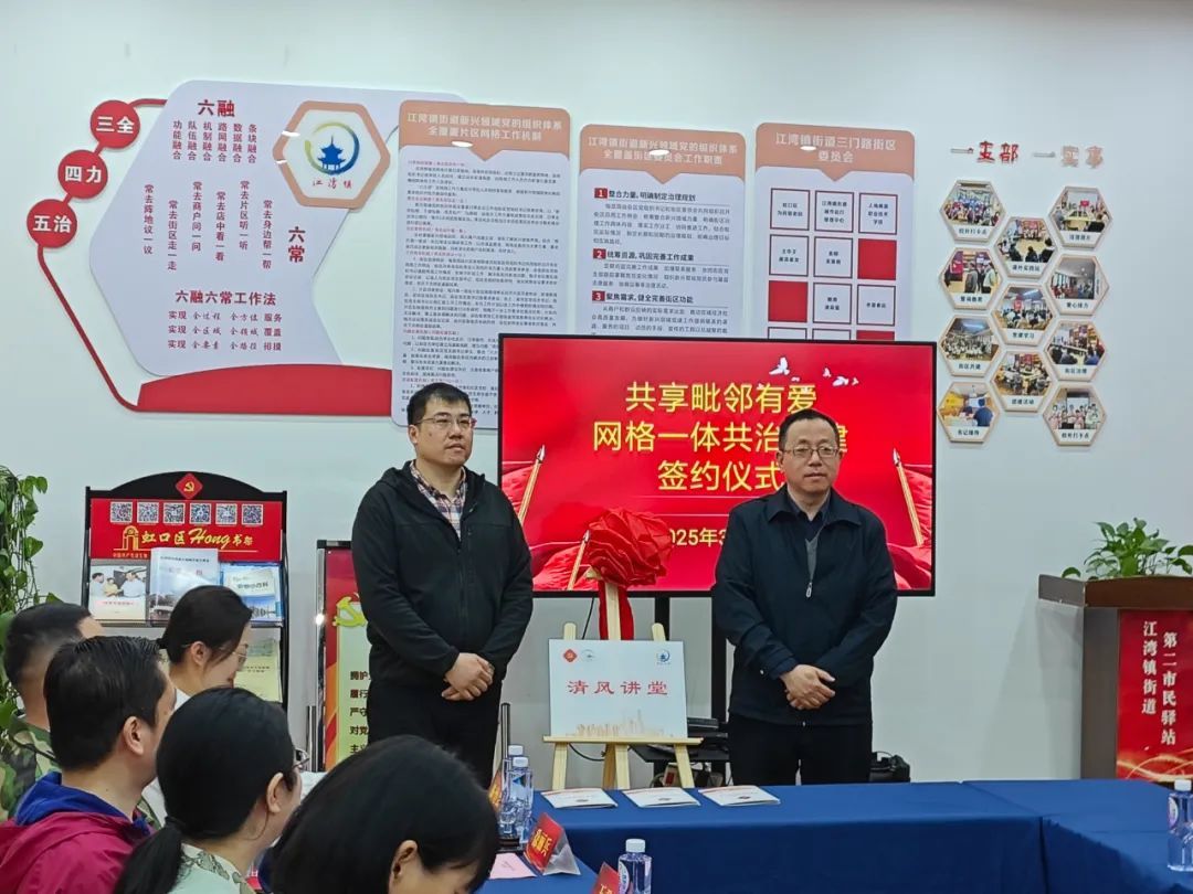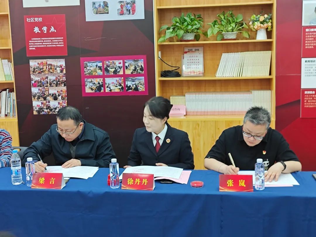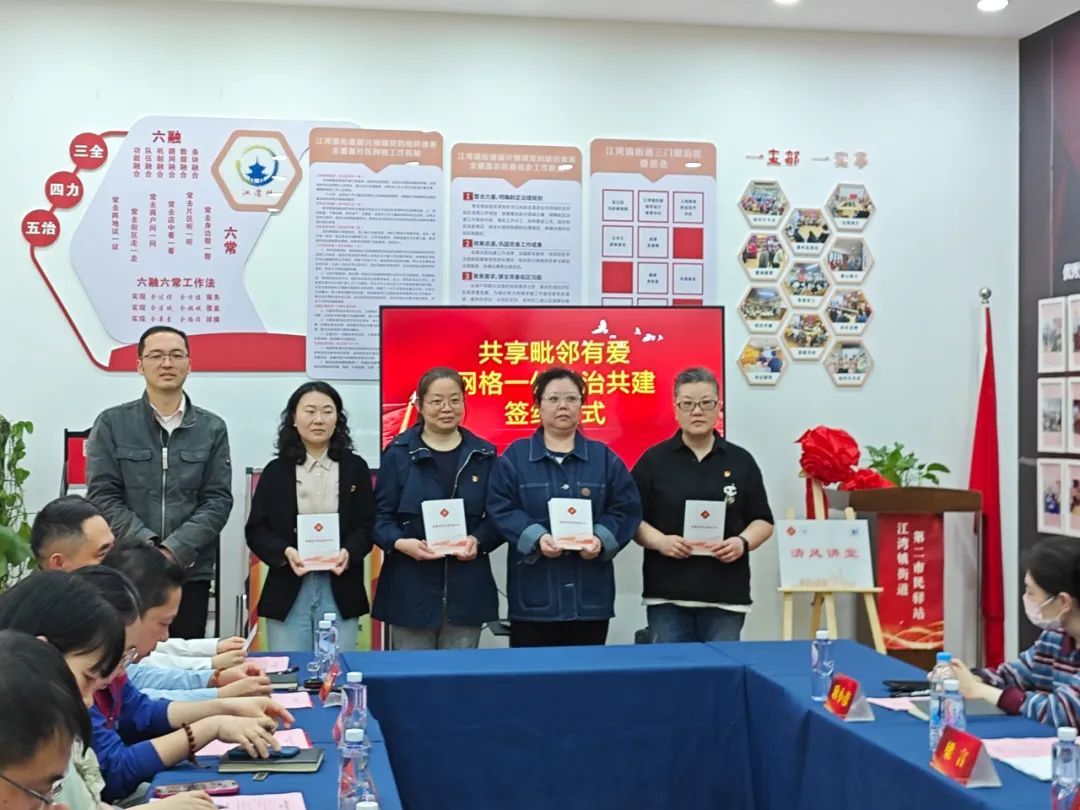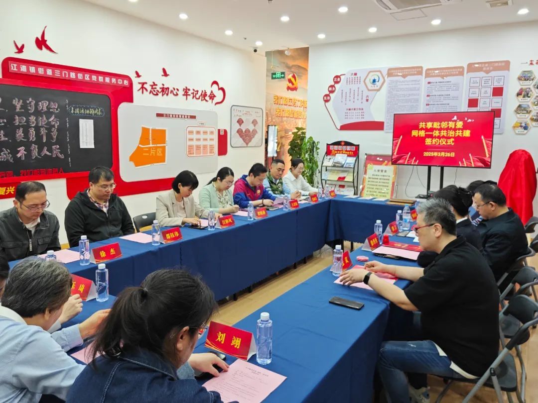 活动伊始,三门居民区党总支书记宣读《共享毗邻有爱、网格一体共治》倡议书。倡议书提到,建设网格一体共治,将通过加强共建单位党组织间的协作联动,充分发挥各自优势资源,将党建工作的政治优势切实转化为社区治理效能,进而提升社区治理精细化、规范化水平,着力营造风清气正、和谐有序的社区发展环境。随后,三门居民区、场中二居民区、韶嘉居民区的三位党总支书记与区有关部门代表共同签署共建协议。