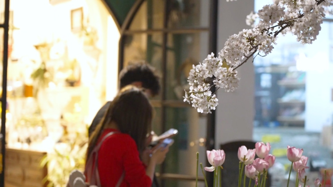 在路边的任意一家书店临窗而坐,甚至都不需要刻意“凹造型”,随手一拍就是一张春日美景大片。