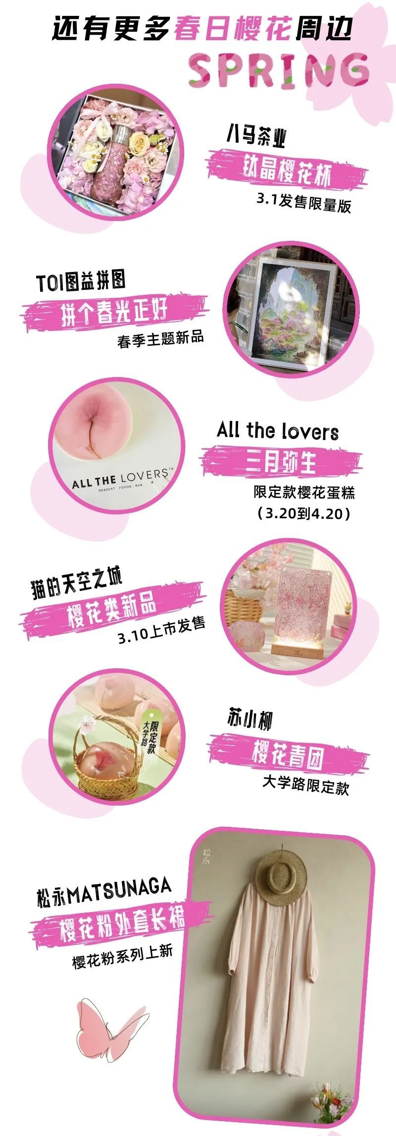 此外,樱花季,大学路各大店铺纷纷上新,樱花季限定“周边”,打卡大学路限时步行街,不妨来这些小店转转~