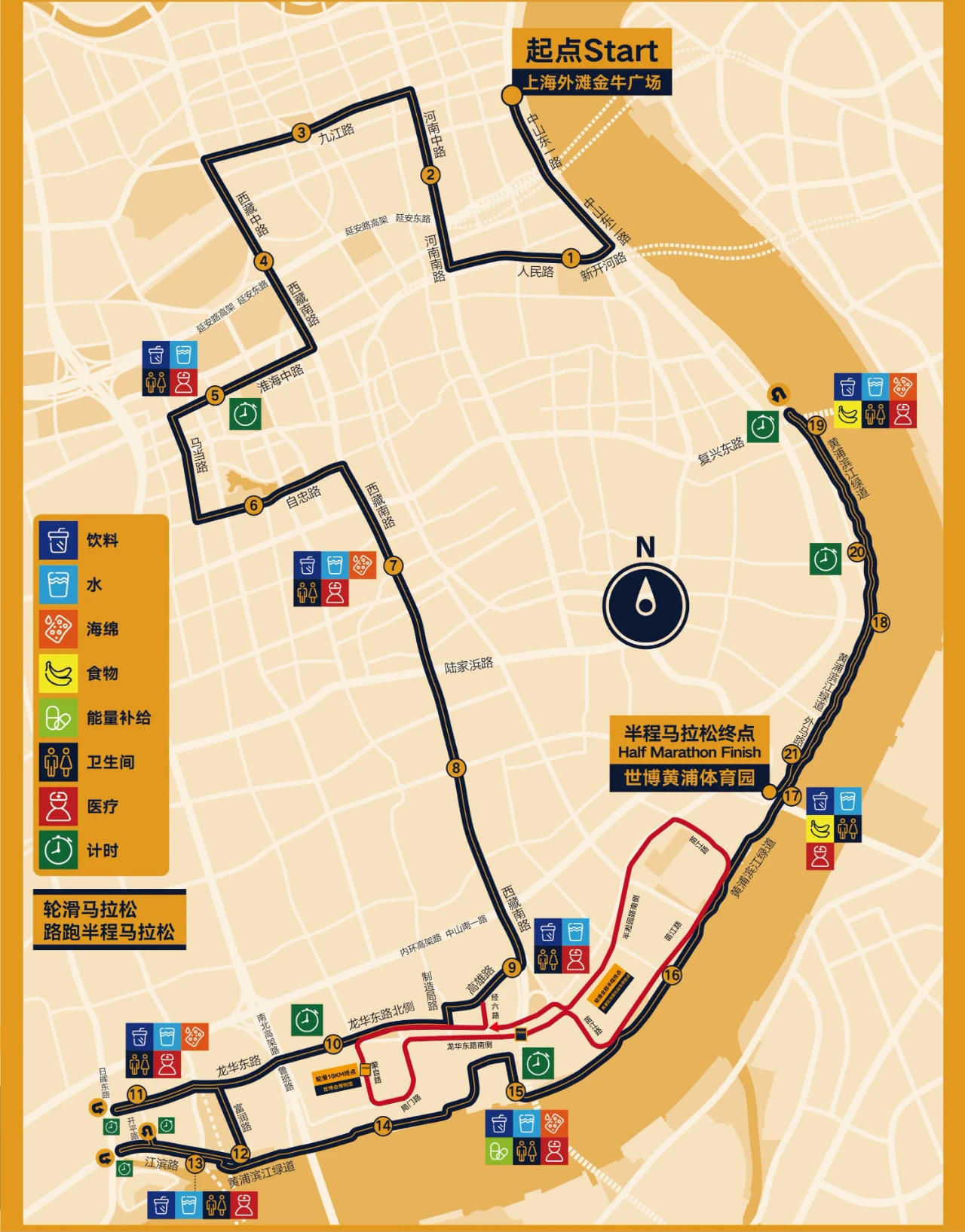 最后,跑者们会在现代体育地标——世博黄浦体育园撞线,结束这段串联起城市记忆地标的21.0975公里路线。