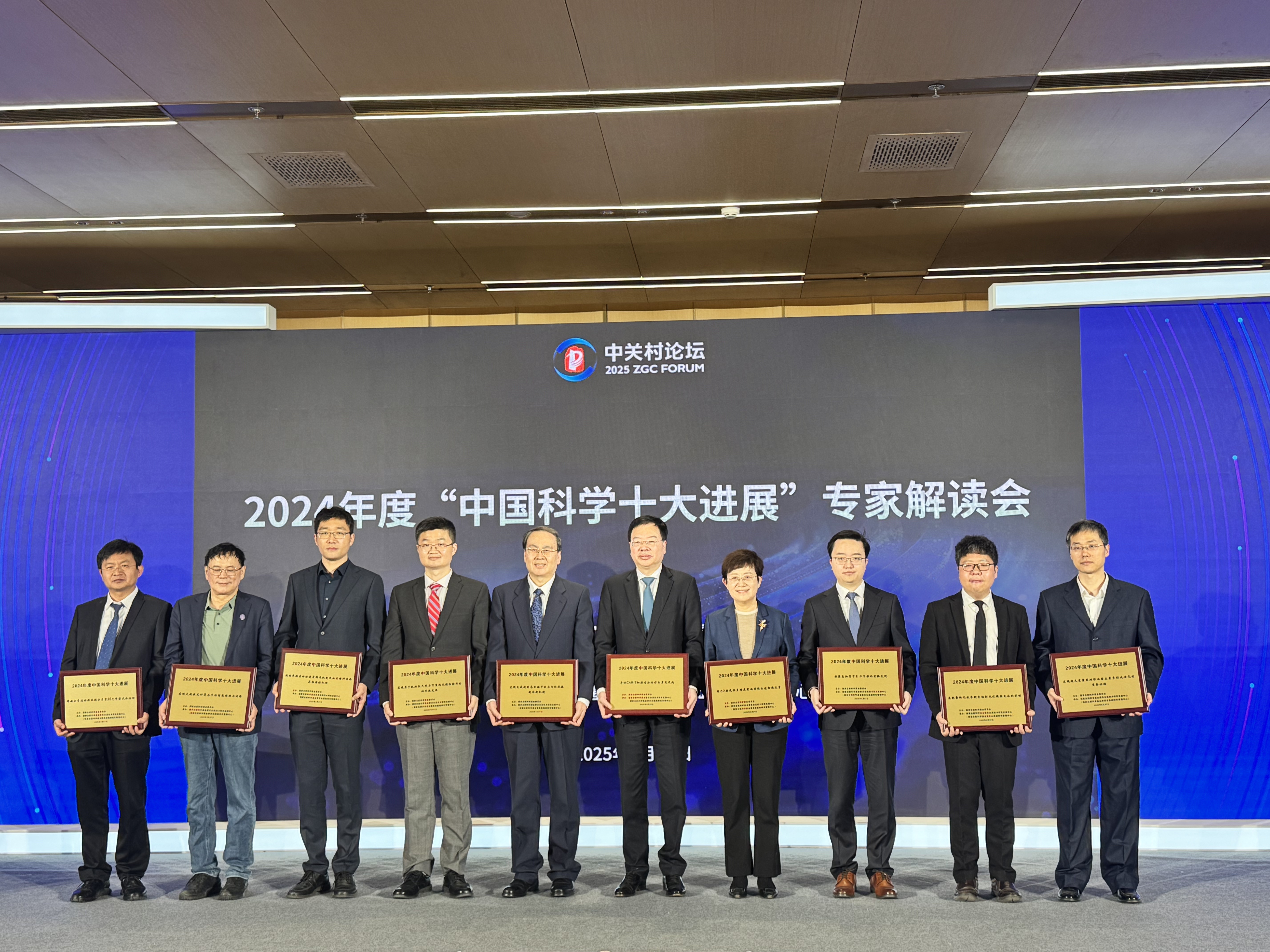2024年度“中国科学十大进展”专家解读会上,从右到左三位依次为王涛、王殳凹、杜灵杰 张宣 摄