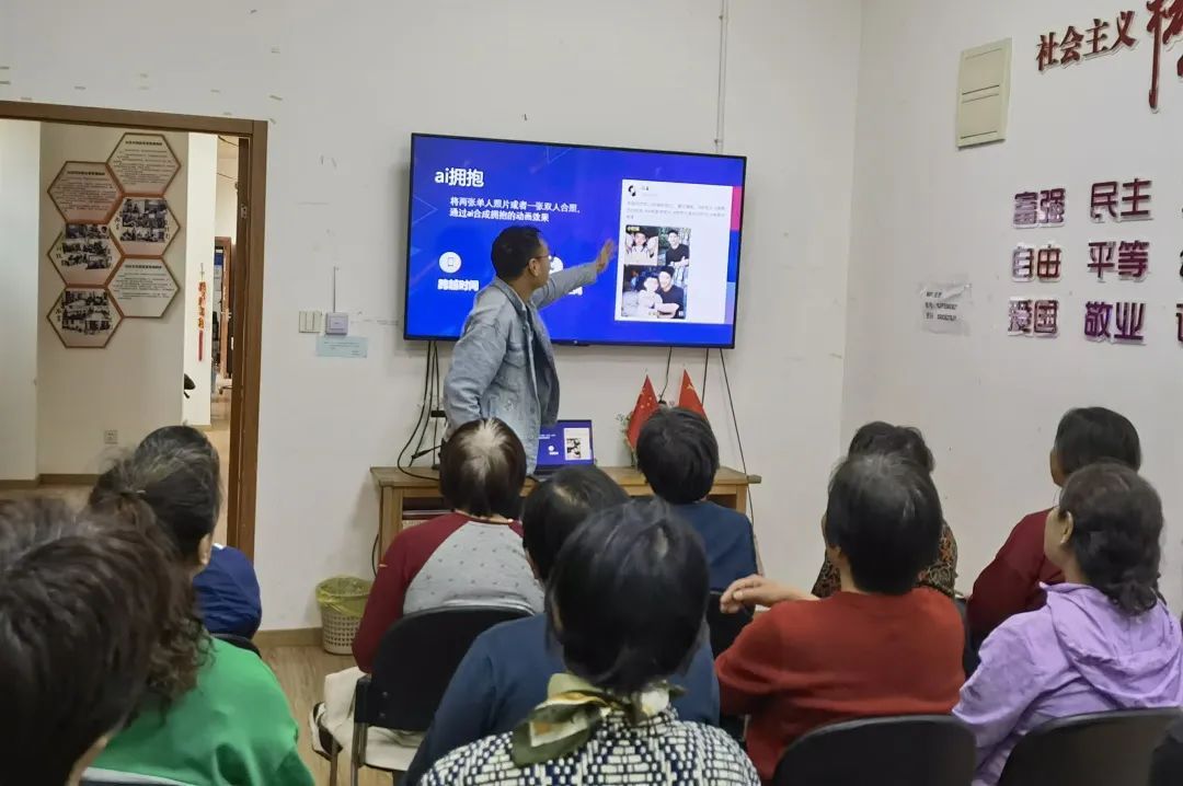 思念远方的亲朋好友,如何才能马上给他一个拥抱?近日,新江湾城街道尚景园社区睦邻中心举办了一场“智能助老 AI传情”主题活动,通过手把手教社区老人使用AI特效,让大家体验了与远方亲人隔空拥抱的温暖时刻。