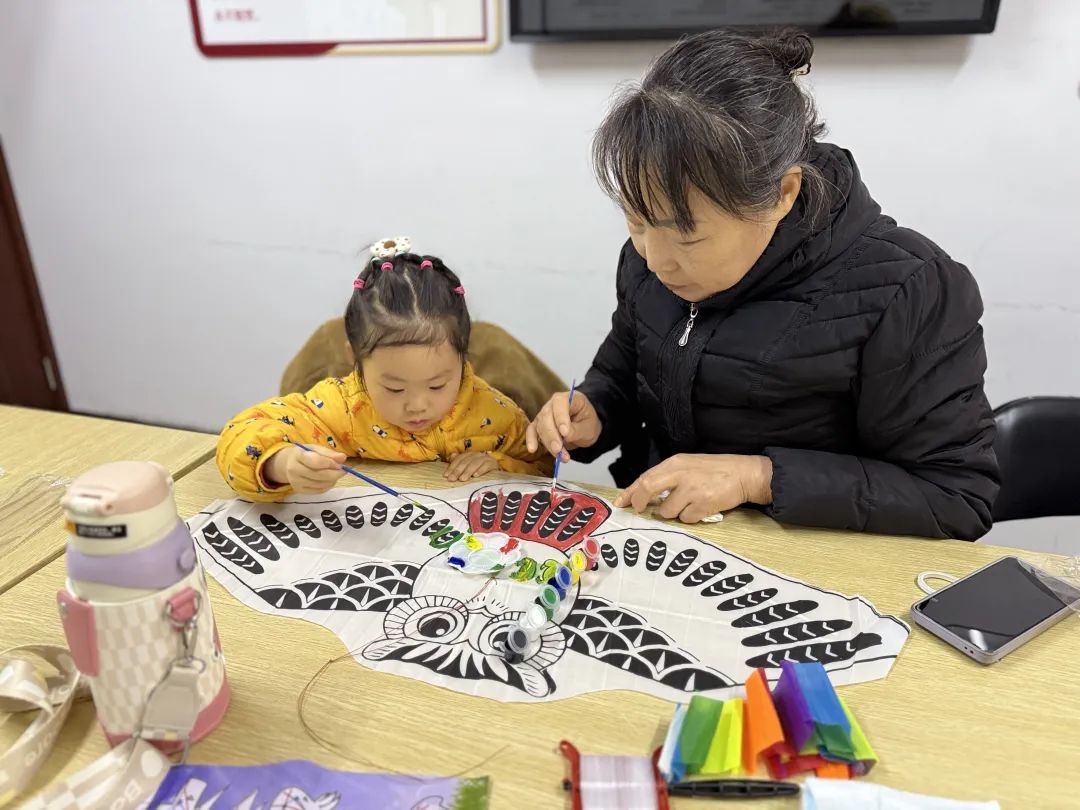 活动伊始,老师绘声绘色地介绍了风筝文化的悠久历史,为孩子们打开了探索传统文化的大门。在手工环节,孩子们发挥天马行空的想象力,用五彩画笔在风筝上勾勒出心中的奇思妙想。家长们也与孩子们配合,帮忙调色、递工具,共同完成这份独一无二的春日手工作品。最终,五颜六色的风筝在春日的天空中起舞,翱翔于蓝天白云之间。