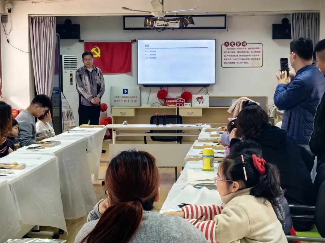 阳曲路760弄居委会在乐龄家园开展了一场充满文化韵味的青年文创亲子活动。15组亲子家庭齐聚一堂,共同走进书法艺术的奇妙世界,感受传统文化的深厚底蕴。