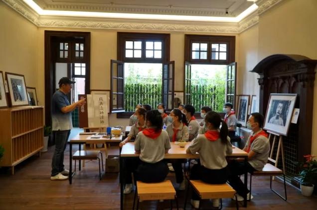 木刻讲习所旧址的二楼,是以艺术、文化、休闲、服务为主题的“艺苑朝华”社区会客厅。
