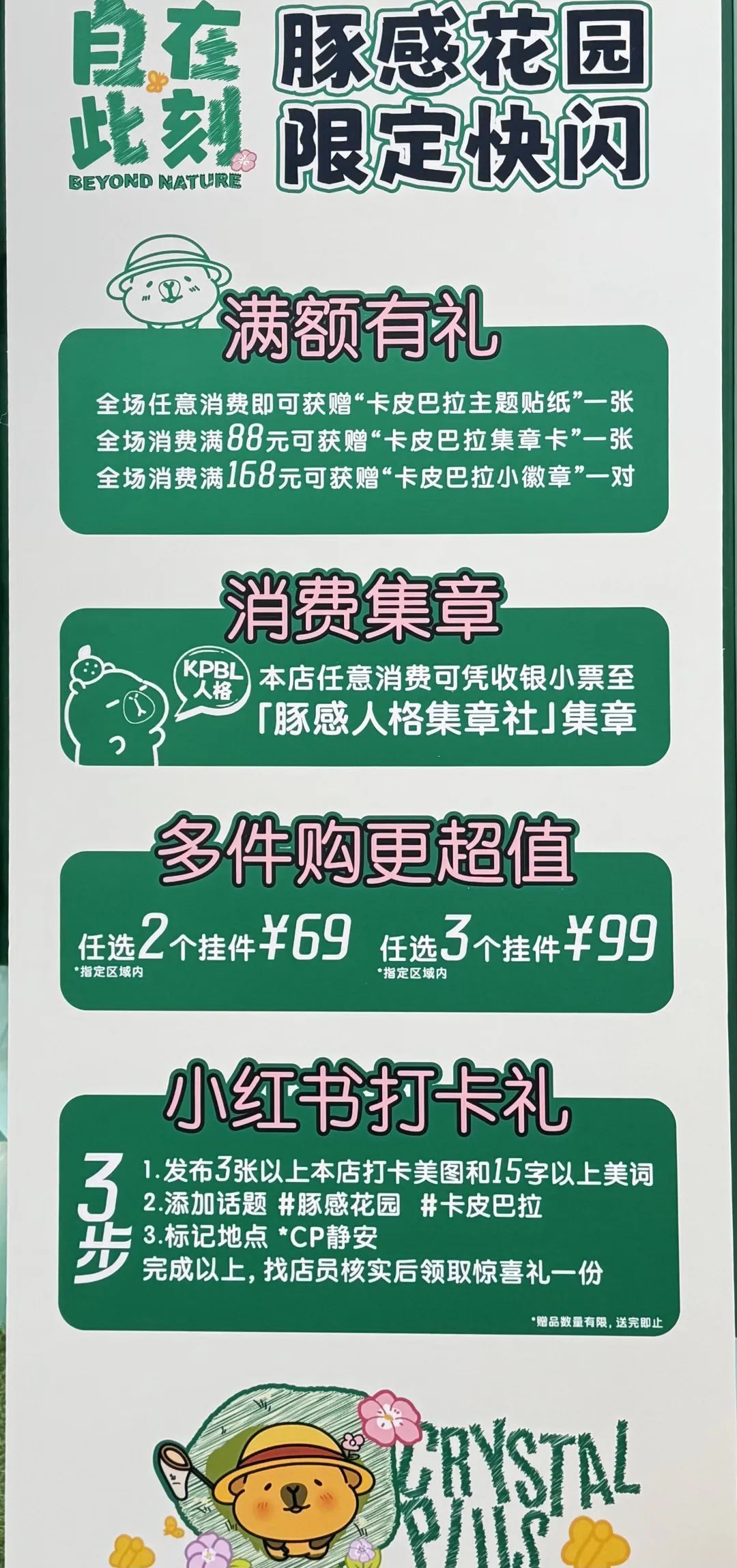 限定快闪期间,还有消费集章、满额赠礼、打卡赠礼等活动。