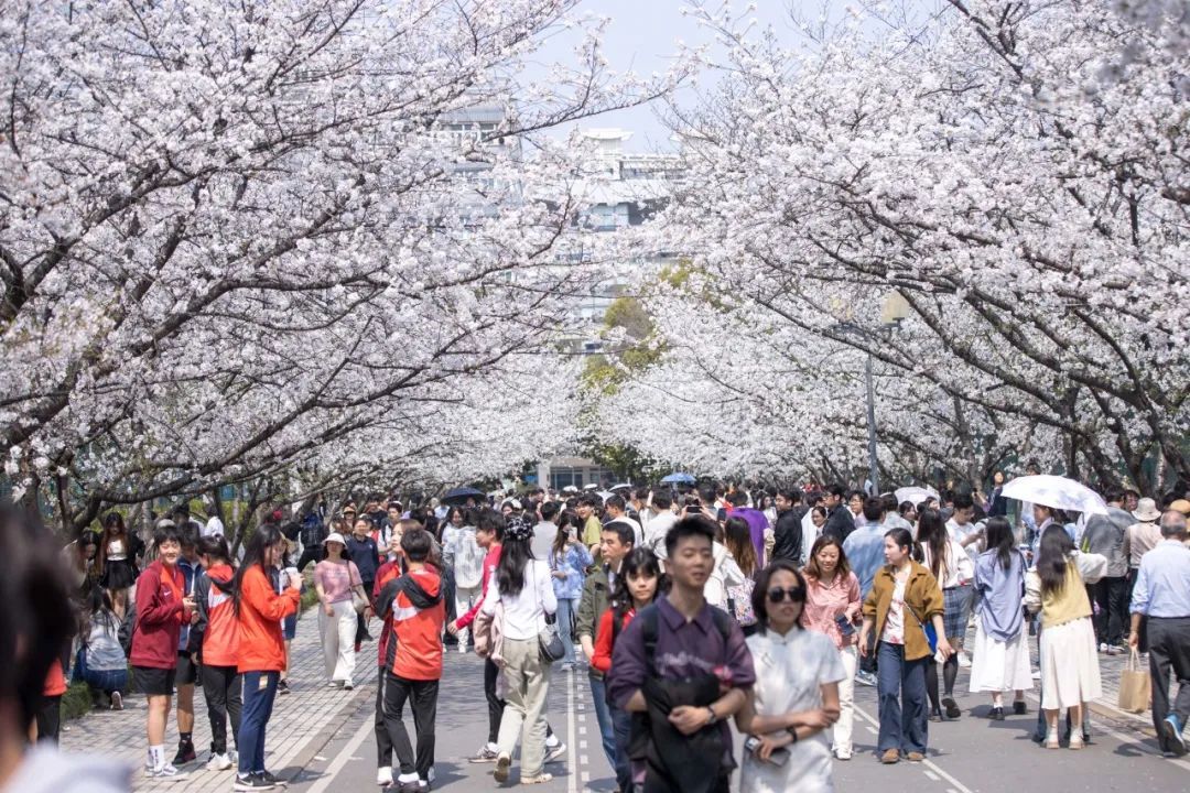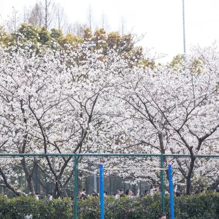 同济大学四平路校区 春日“限定版”浪漫又来啦 同济樱花大道早樱盛放 是沪上校园每年的“顶流”春景 粉白色的小花 一簇簇地压在枝头上 凝聚成一片片童话里飘出的“云” 操场上 同学们伴着樱花“云”起舞 为青春注入活力 在树下 毕业季合影留念、朋友三五小聚 珍藏最美好的校园时光