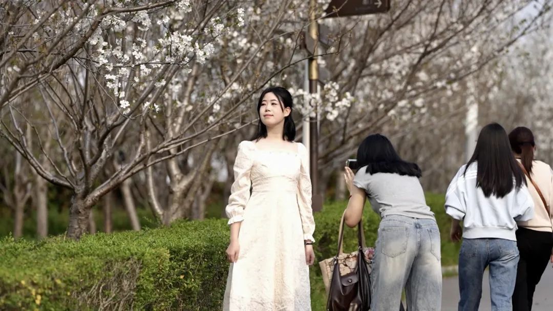 正在拍摄vlog的市民李女士告诉记者,她已是连续三年来此赏樱。