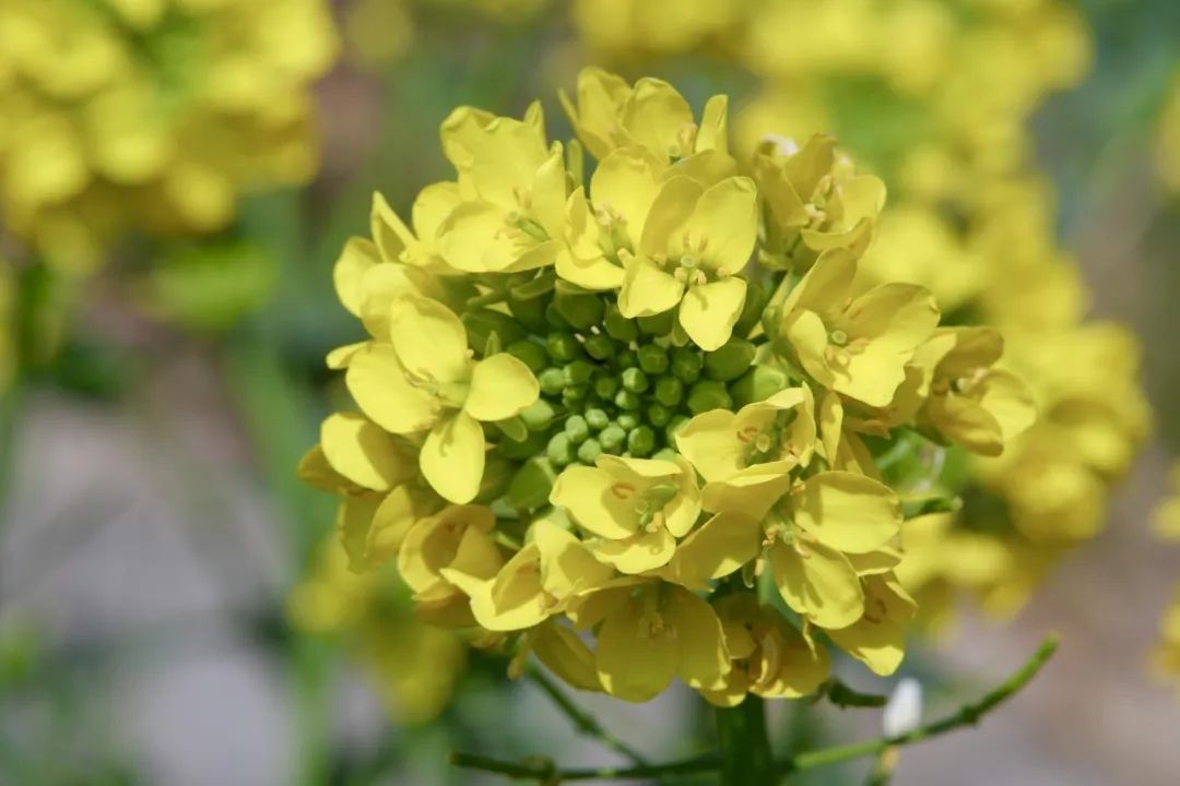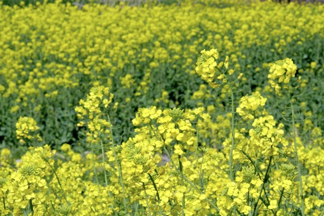 阳光的碎片坠入人间,琥珀色的星辰在绿浪间呼吸,原来春天把亲昵藏在了菜花的褶皱里。