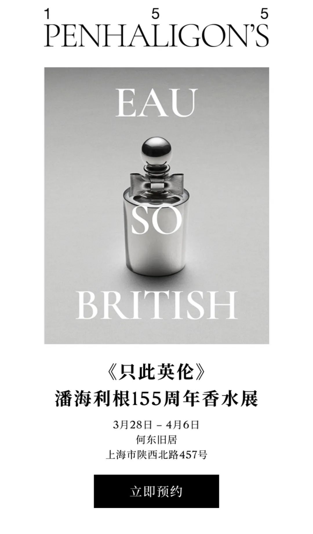 值品牌155周年之际,潘海利根携手中国艺术家何鲜,共同打造《只此英伦》香水展全球首展特别展厅,回溯英伦芬芳传奇。