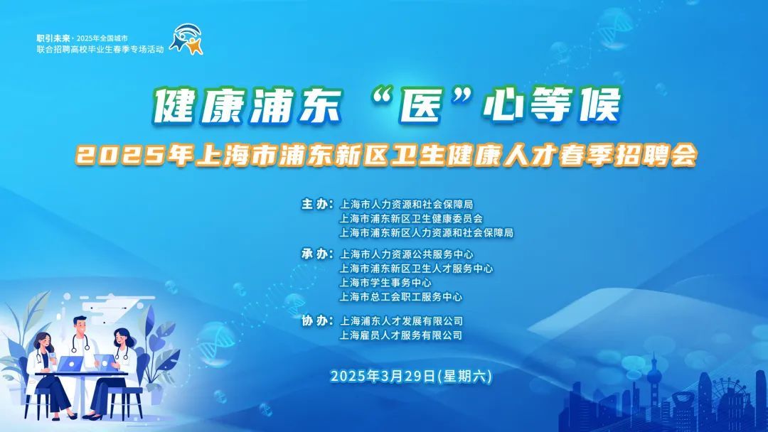 春回大地,职启新篇。为贯彻落实浦东全力打造国际人才发展引领区战略部署,全面落实就业优先政策,推进浦东新区卫生健康事业高质量发展,2025年上海市浦东新区卫生健康人才春季招聘会火热开启!