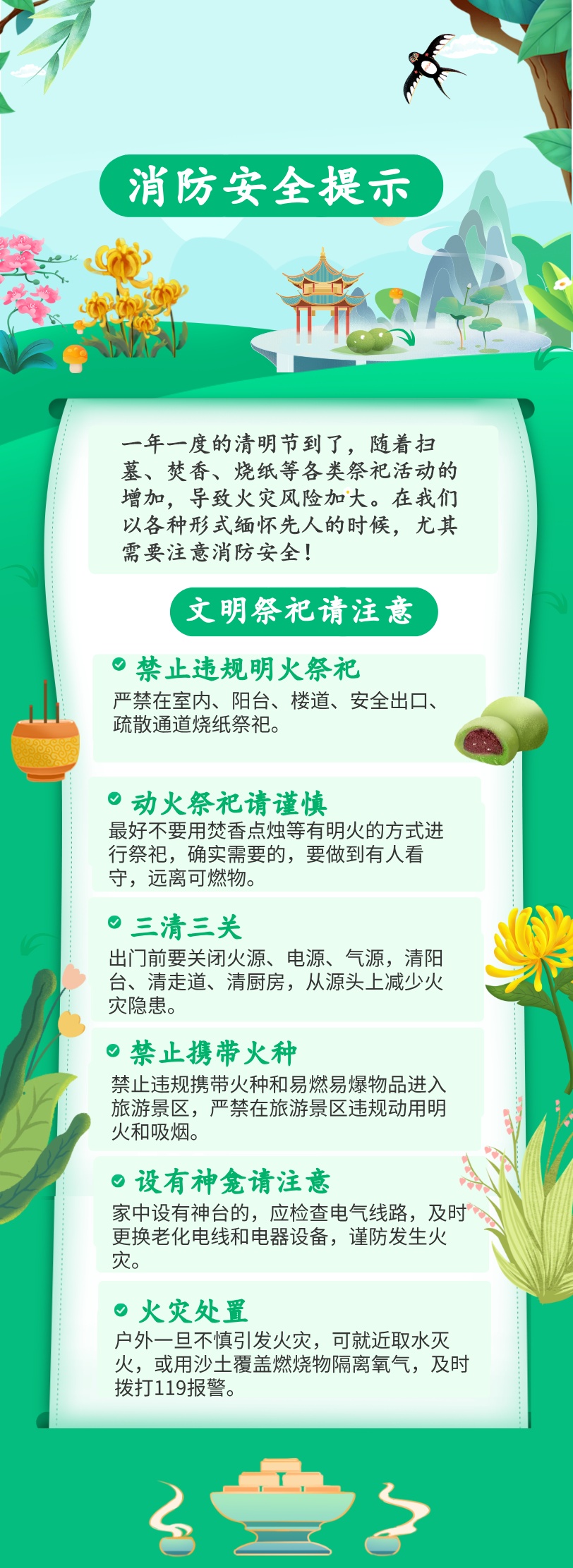 清明节将至,扫墓祭祖、焚香烧纸逐渐频繁,发生火灾的风险随之增加。在此,长宁区消防救援局提醒广大市民群众文明祭祀,注意消防安全,确保祭扫活动有序进行。