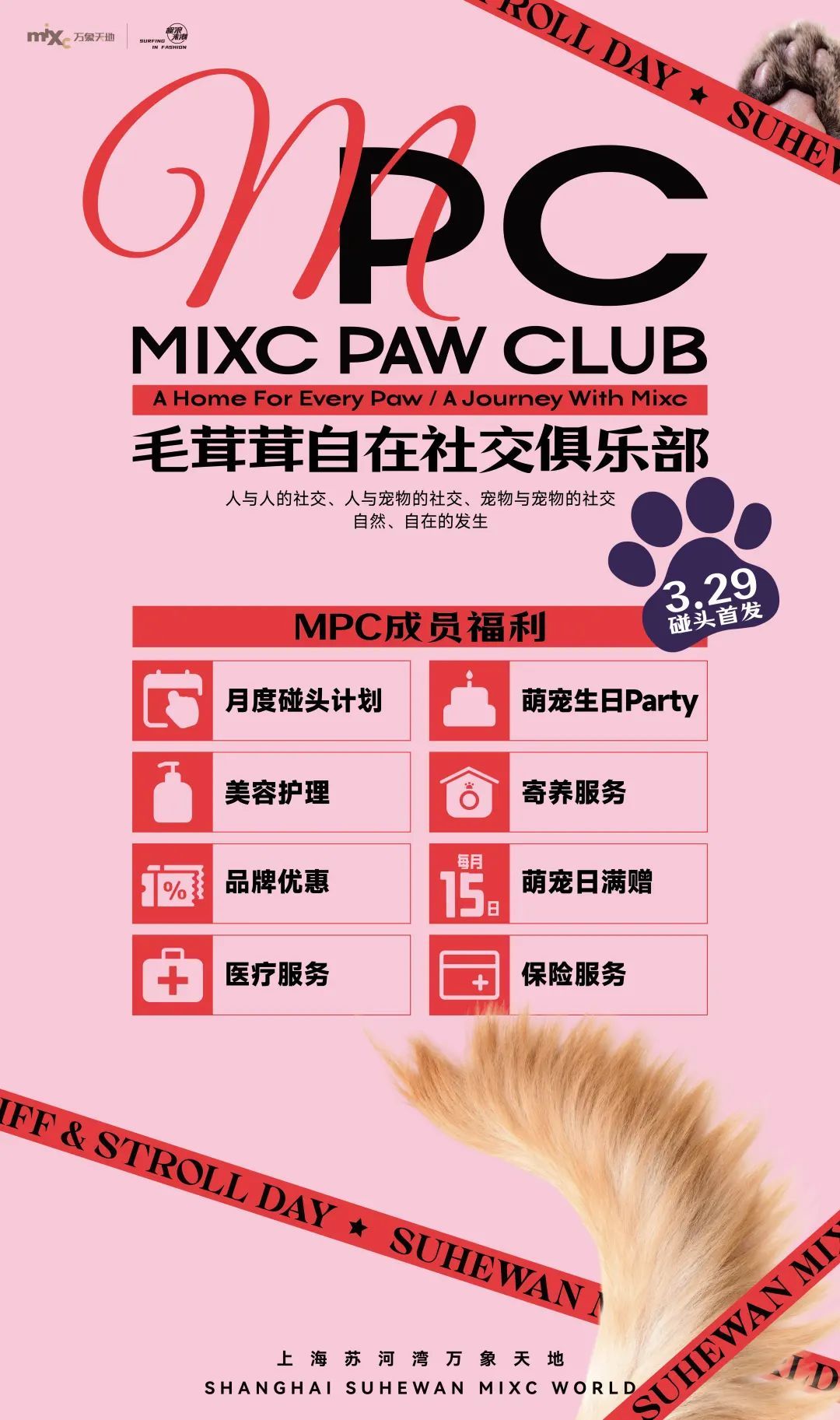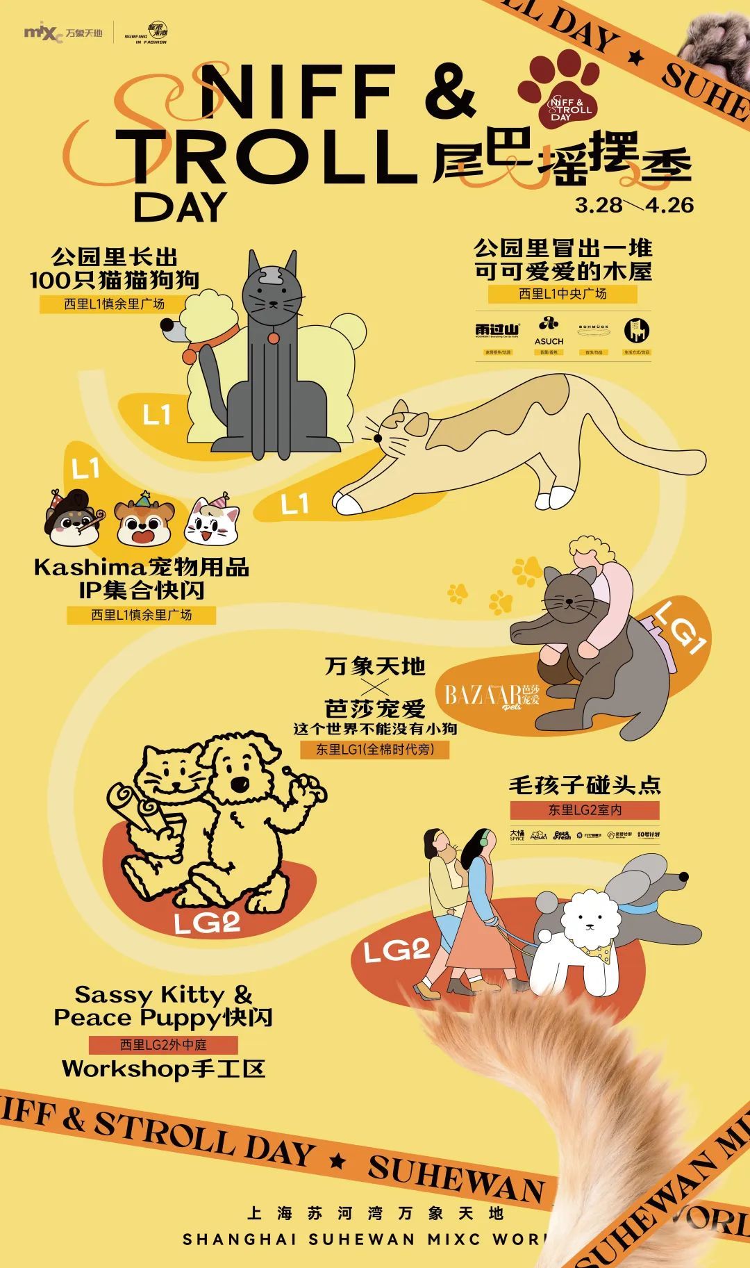 3月28日至4月26日,上海苏河湾万象天地将开启“尾巴摇摆季Sniff & Stroll Day”,推出一大波专为“毛孩子”定制的有趣活动,快趁着春日好天气,带上“毛孩子”出门玩耍吧!