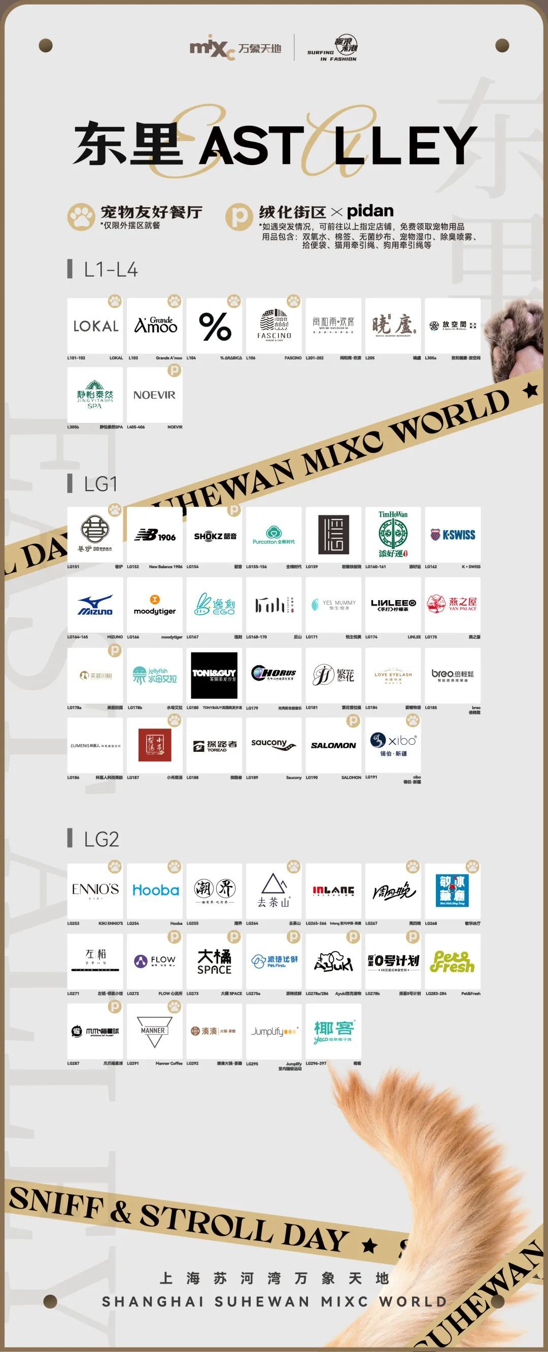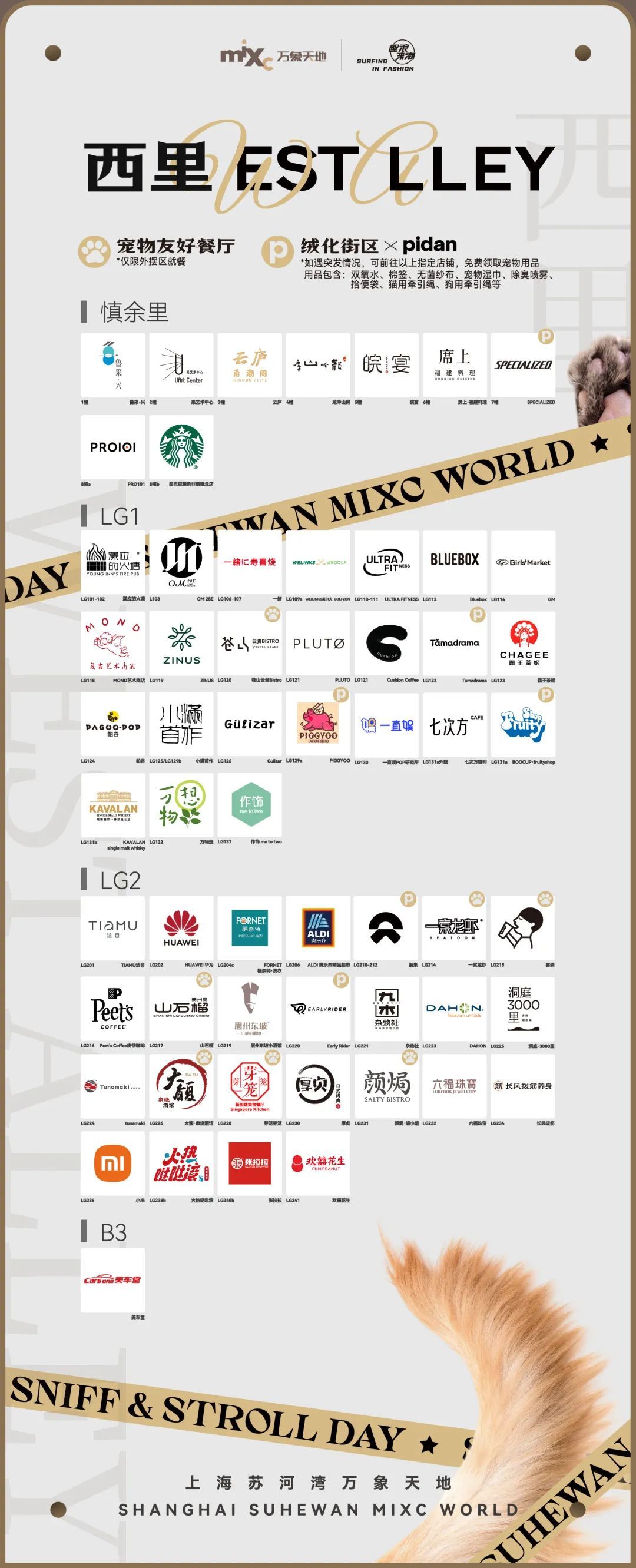 作为宠物友好公共空间,上海苏河湾万象天地联手场内30+商户加入pidan绒化街区企划3.0“宠物友好物料包公益计划”,为携宠出行的顾客提供更安心的保障。