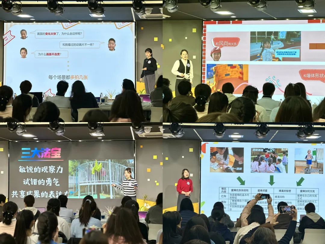 此次举行的“课程故事汇”决赛现场精彩纷呈,台上选手分享探索故事,台下的教师观众纷纷举起手机记录经验。许多参赛教师从幼儿提出的真实问题出发,“大手牵小手”踏上动手又动脑的探索之旅——