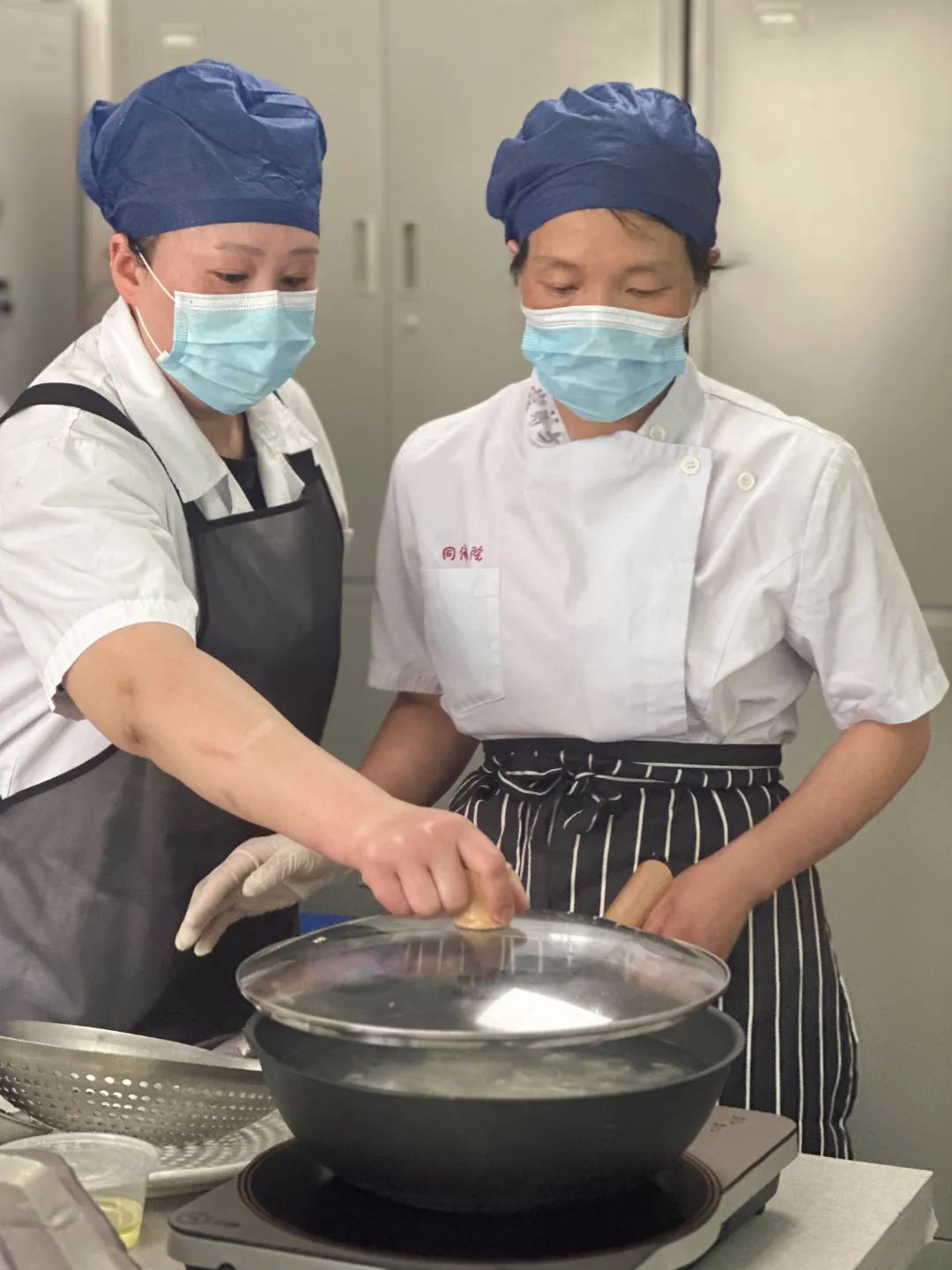 科普讲座后,治疗厨师现场烹饪了两道适合心血管患者的菜肴——“松子茄汁鱼片”和“马兰头水晶包”。从食材的选择到烹饪的步骤,厨师细致展示了如何兼顾美味与健康。香气四溢的菜肴出锅后,患者们品尝之余都连连称赞。