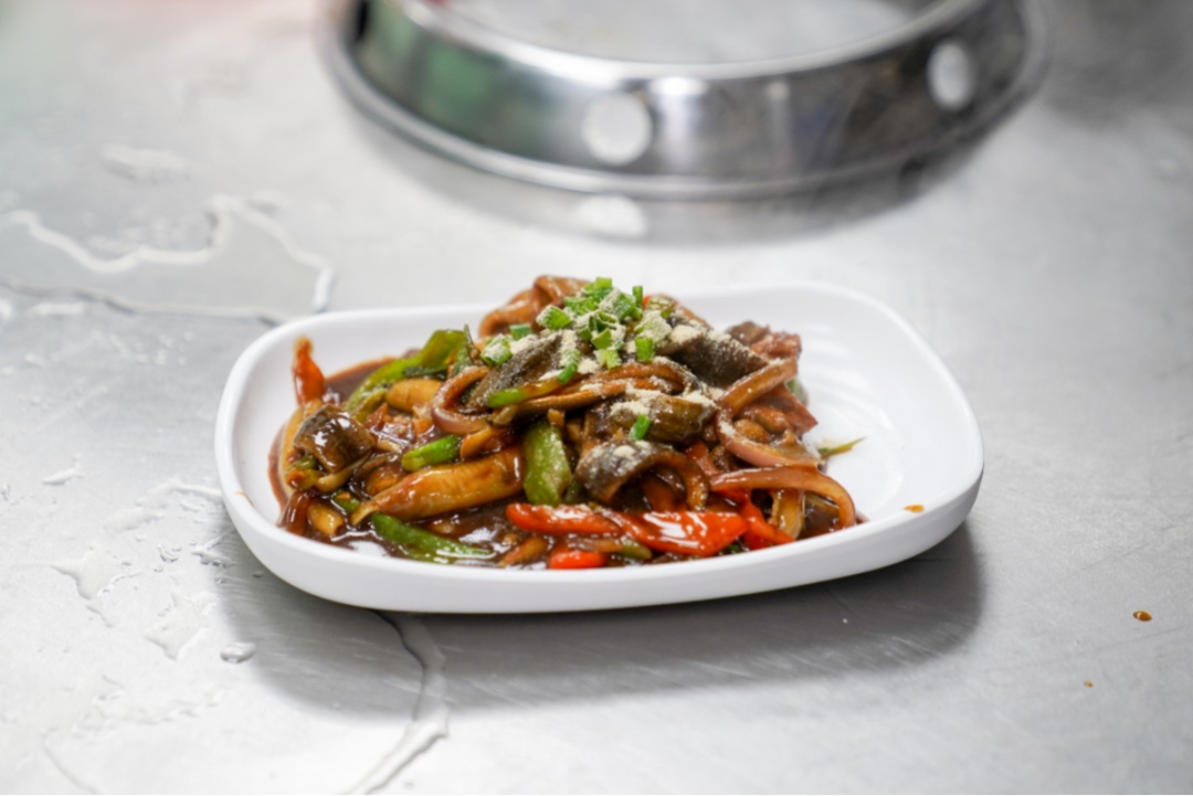 响油鳝丝是居民常点的一道浇头。只见厨师长制作时手法娴熟,掐头去尾,仅取鳝鱼中间段,经大火爆炒后精心摆盘,端上桌时还滋滋作响,香气四溢。吃过多家食堂的居民唐爷叔吃了一口,就知道这口味正不正宗。他对记者说:“这是做本帮菜的社区食堂。我了解这个厨师,他是从饭店出来的,做的菜很对上海本地人的口味,不偏甜也不偏咸,居民都很认可他烧的菜。”