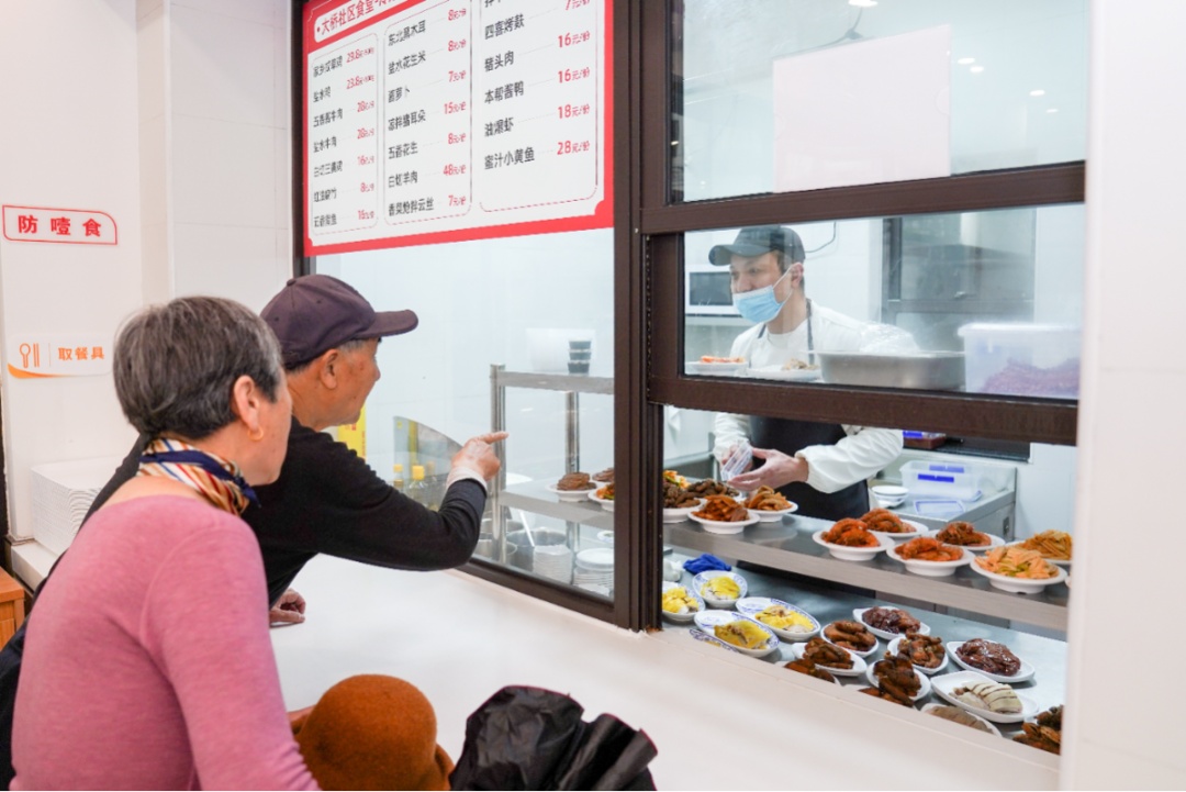 据悉,东湾社区食堂可提供一日三餐。60—69周岁居民凭折扣卡消费可享9折,70周岁以上居民享8.5折。在13:00—14:00和18:00—19:00,快递员、环卫工人等户外工作者也能享受8.5折优惠。